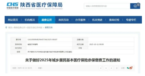 (10月11日)陜西省醫(yī)保局發(fā)布《關于做好2025年城鄉(xiāng)居民基本醫(yī)療保險參保繳費工作的通知》↓↓↓