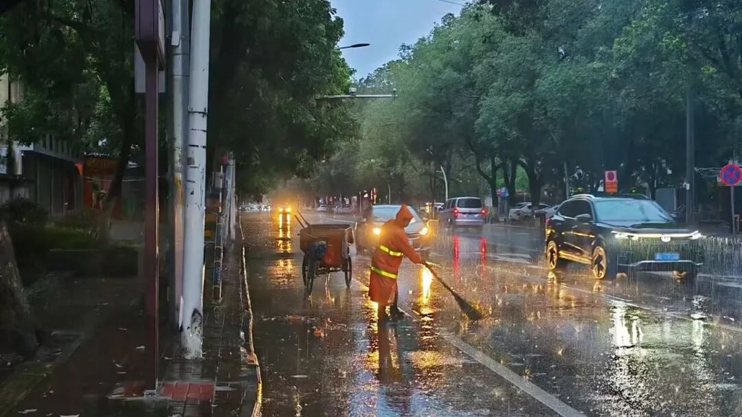 從清晨到午后,雨勢(shì)時(shí)大時(shí)小,但這些城市守護(hù)者的身影始終活躍在街頭巷尾。環(huán)衛(wèi)工人的辛勤勞作,保證了雨停路凈;執(zhí)法隊(duì)員的及時(shí)處置,確保了道路通暢。他們?cè)诖笥曛袌?jiān)守的背影,成為了這座城市最動(dòng)人的風(fēng)景,也筑起了一道堅(jiān)實(shí)的“暖心防線(xiàn)”,贏得了過(guò)往市民的由衷點(diǎn)贊。