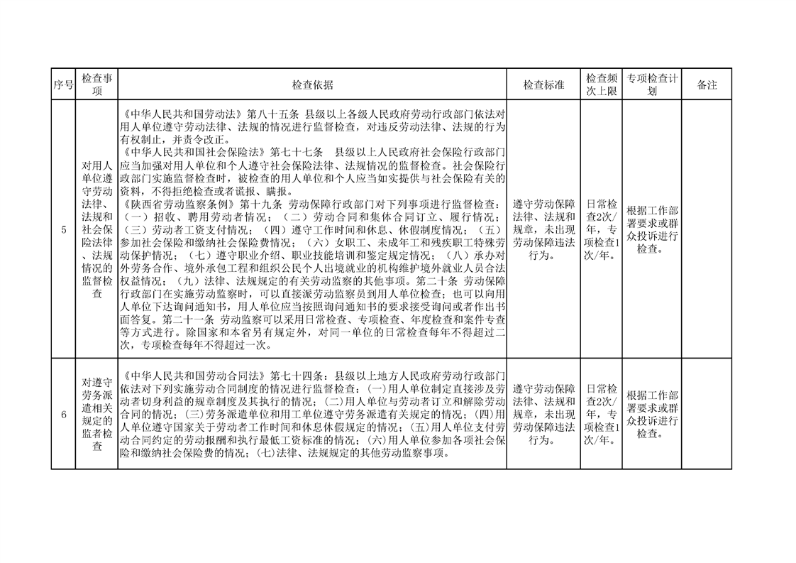漢臺(tái)區(qū)人力資源和社會(huì)保障局涉企行政檢查事項(xiàng)梳理表