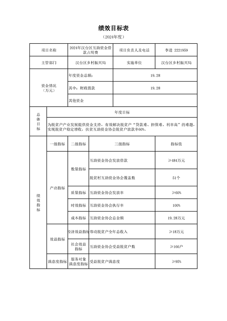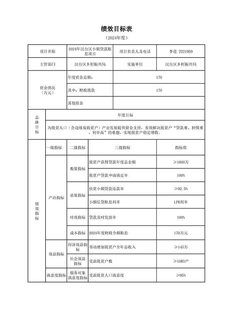 關(guān)于漢臺(tái)區(qū)2024年第一批財(cái)政銜接資金小額貸款貼息等項(xiàng)目績(jī)效目標(biāo)公開
