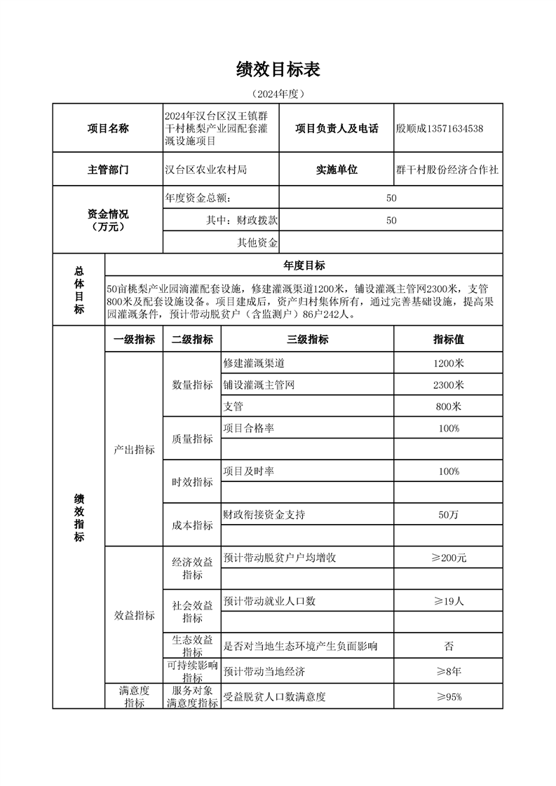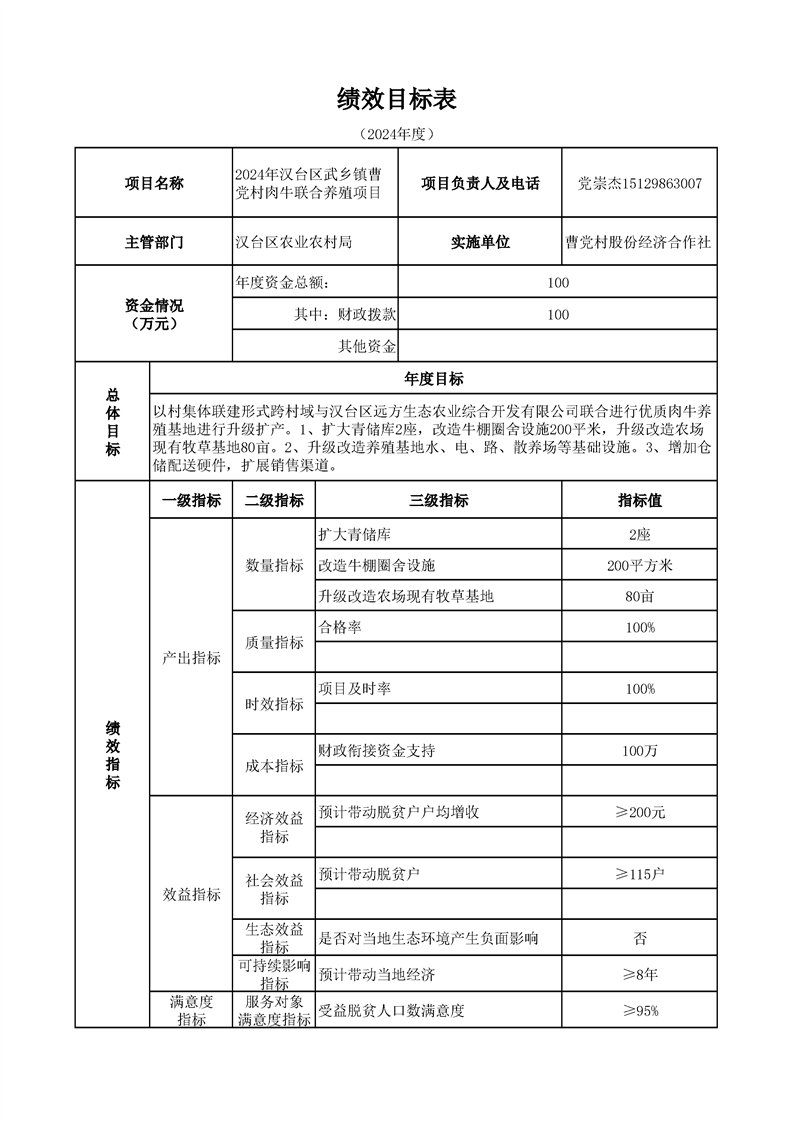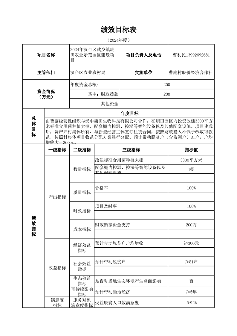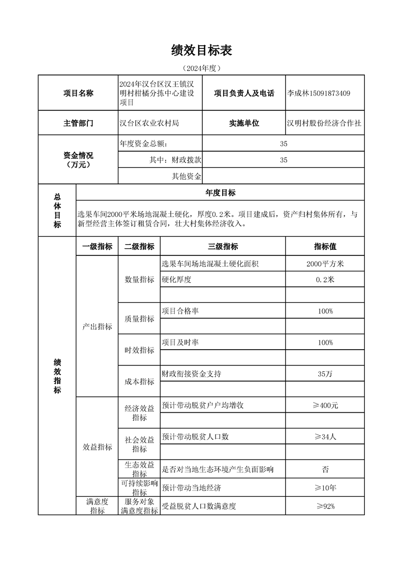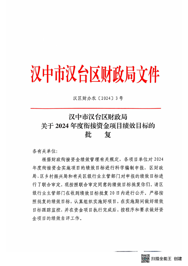 漢臺區2024年財政銜接資金第一批產業發展項目績效目標公開
