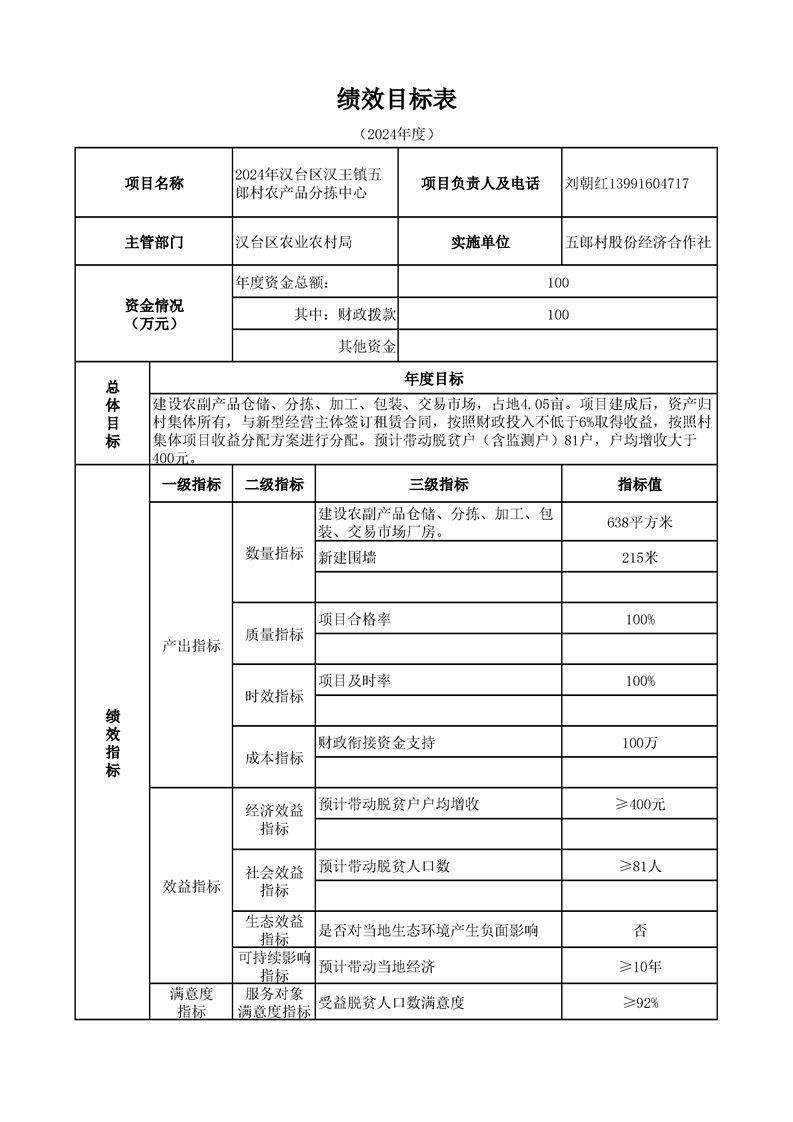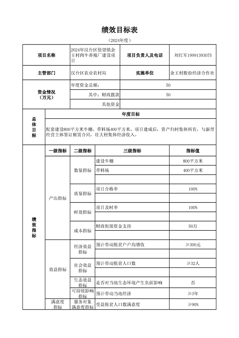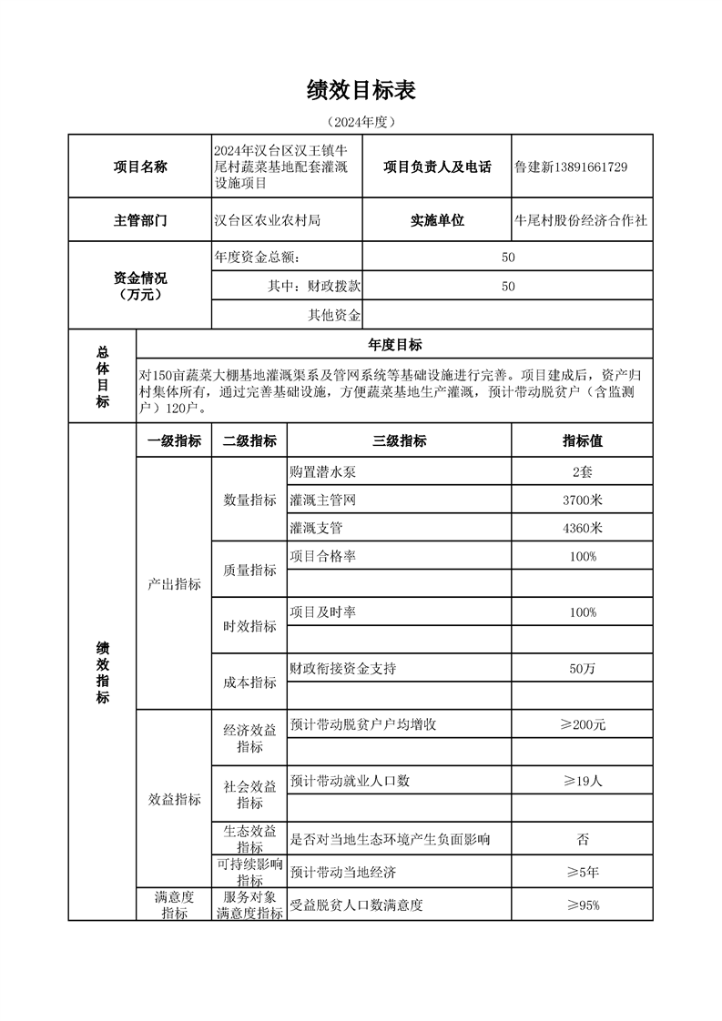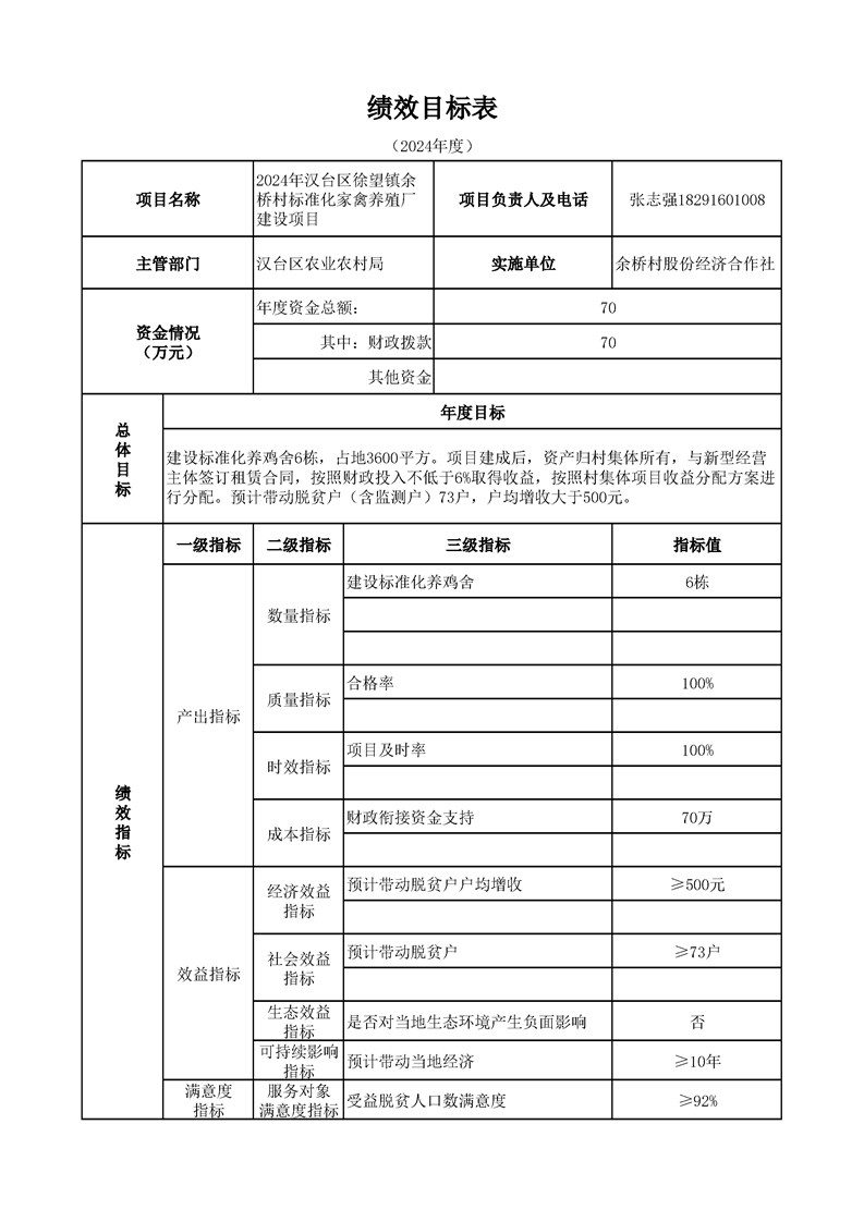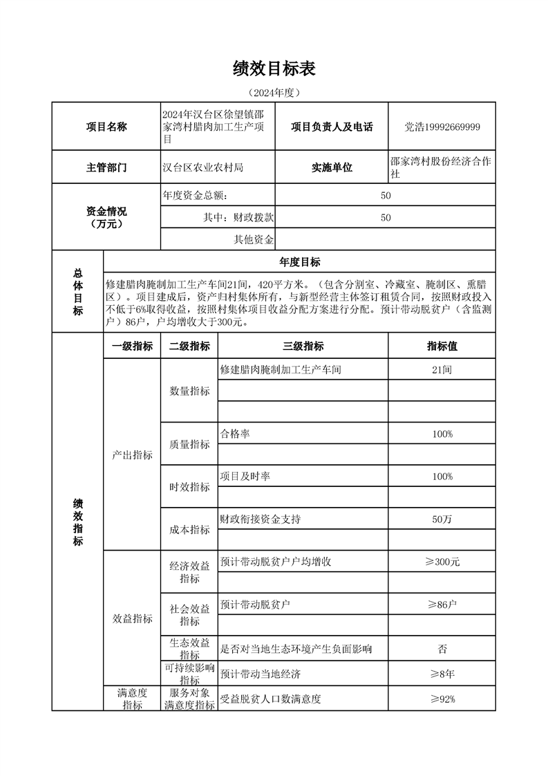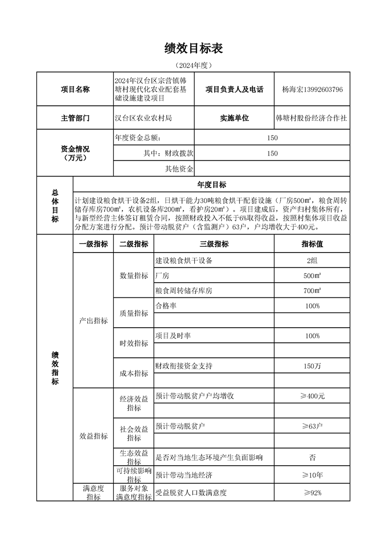 漢臺區2024年財政銜接資金第一批產業發展項目績效目標公開