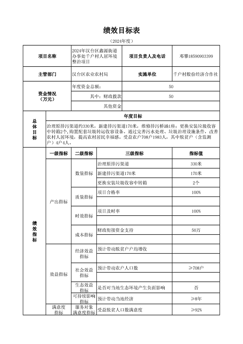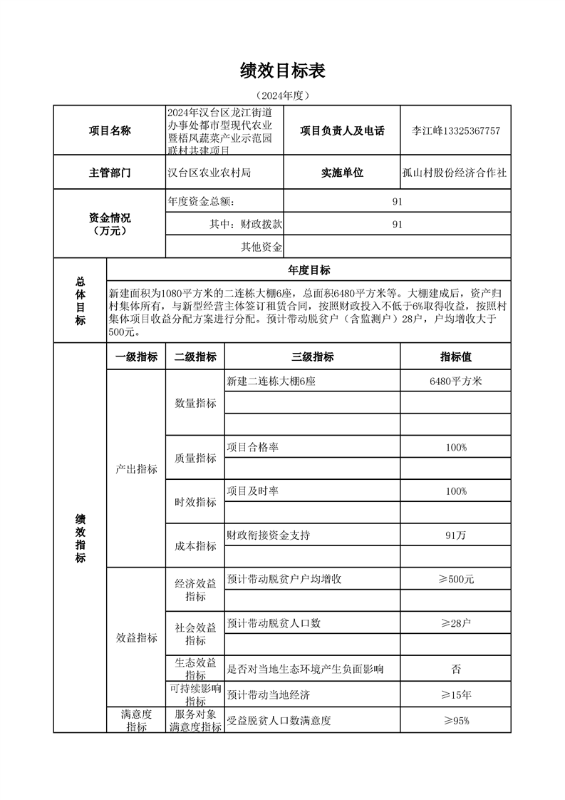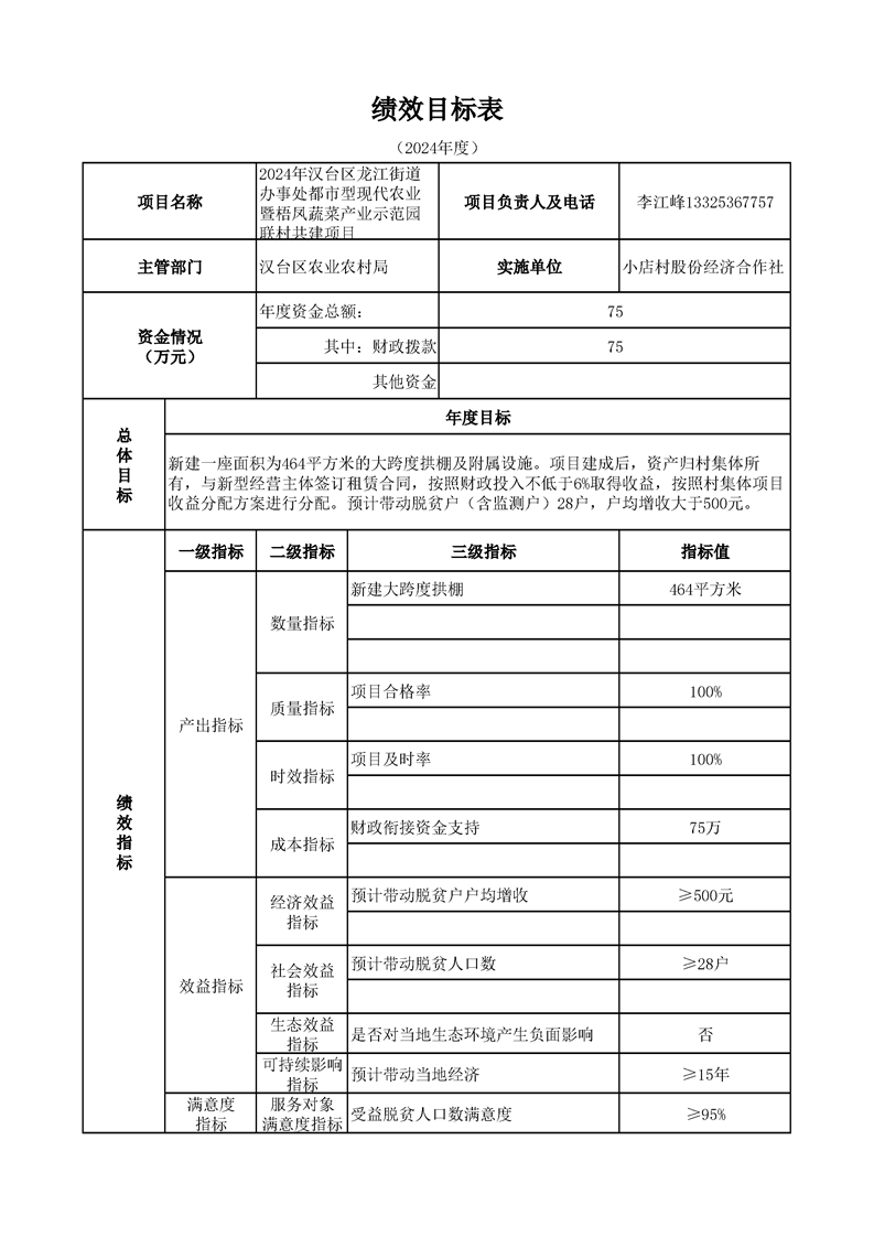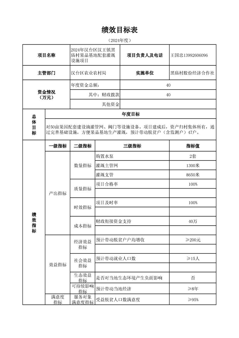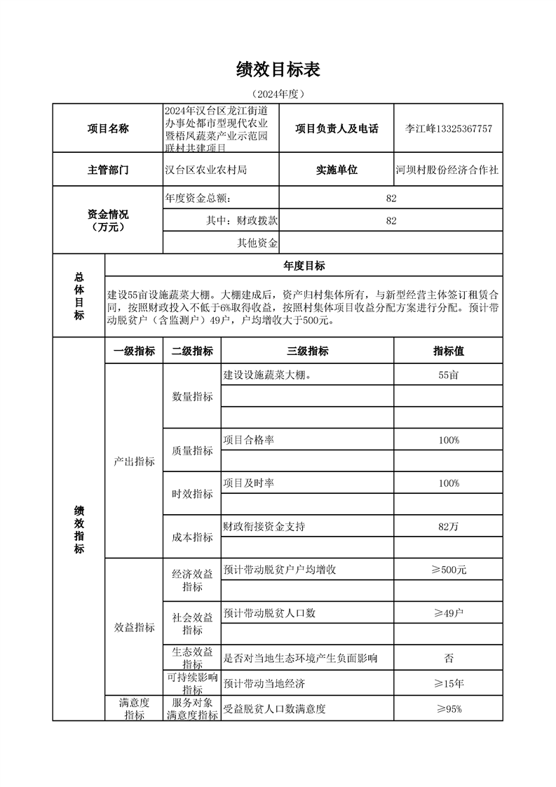 漢臺區2024年財政銜接資金第一批產業發展項目績效目標公開