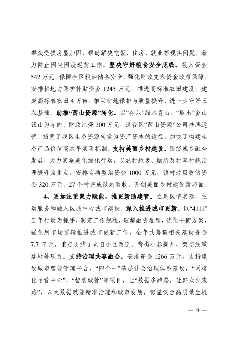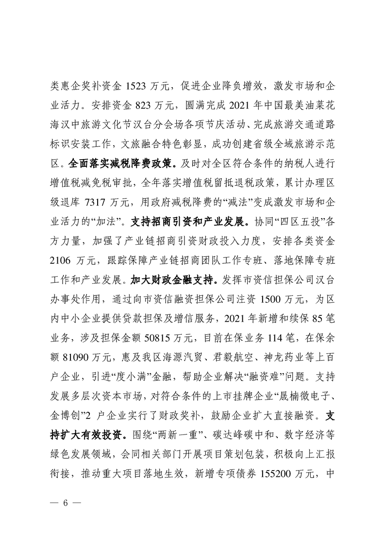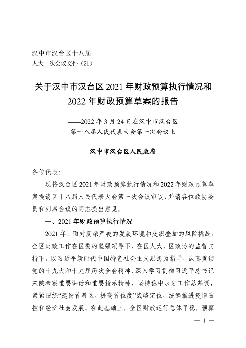 關(guān)于漢中市漢臺(tái)區(qū) 2021 年財(cái)政預(yù)算執(zhí)行情況和2022 年財(cái)政預(yù)算草案的報(bào)告