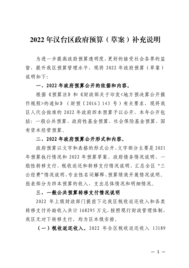 2022 年漢臺區政府預算(草案)補充說明