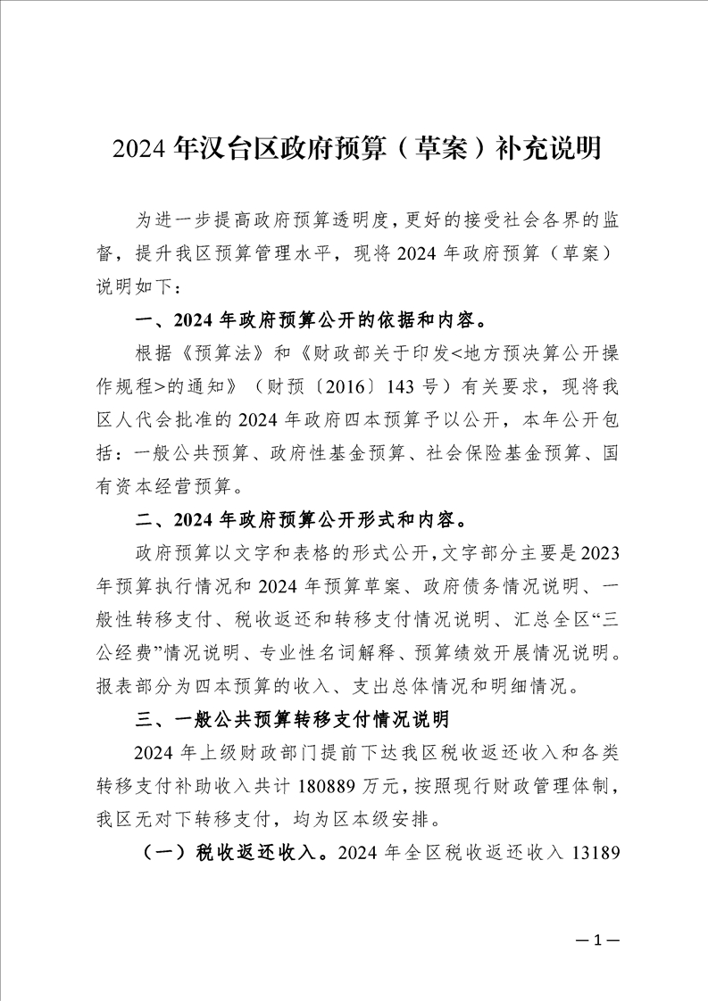 2024年漢臺(tái)區(qū)政府預(yù)算(草案)補(bǔ)充說明