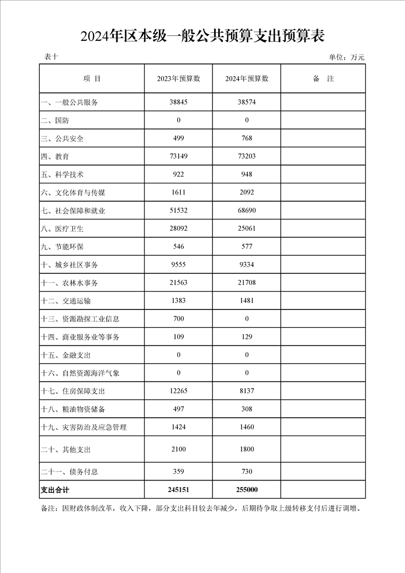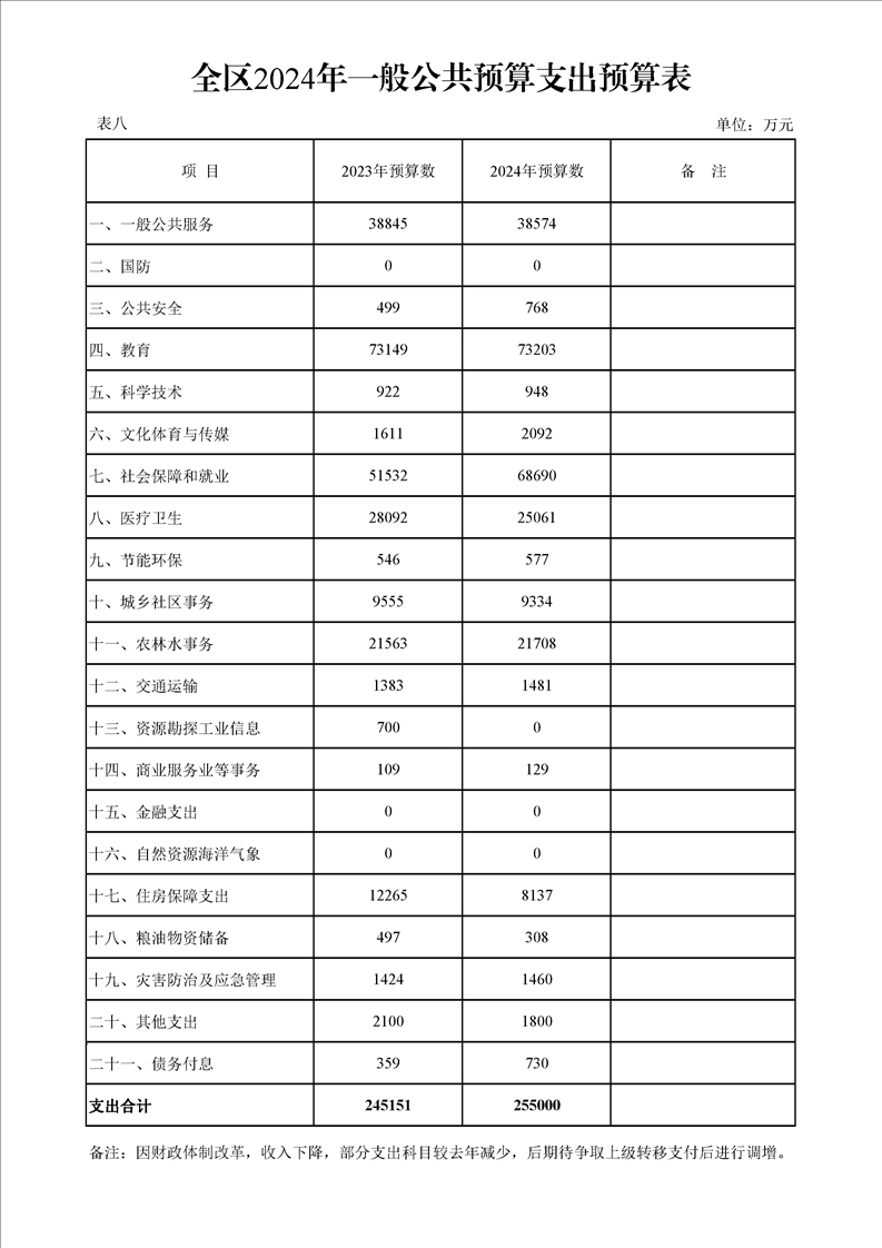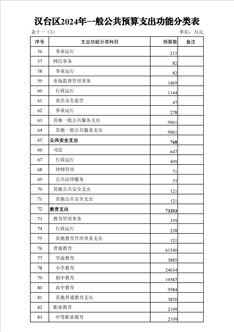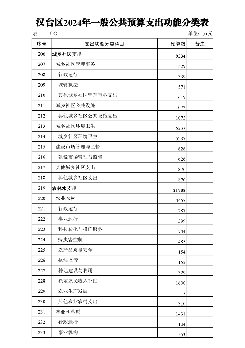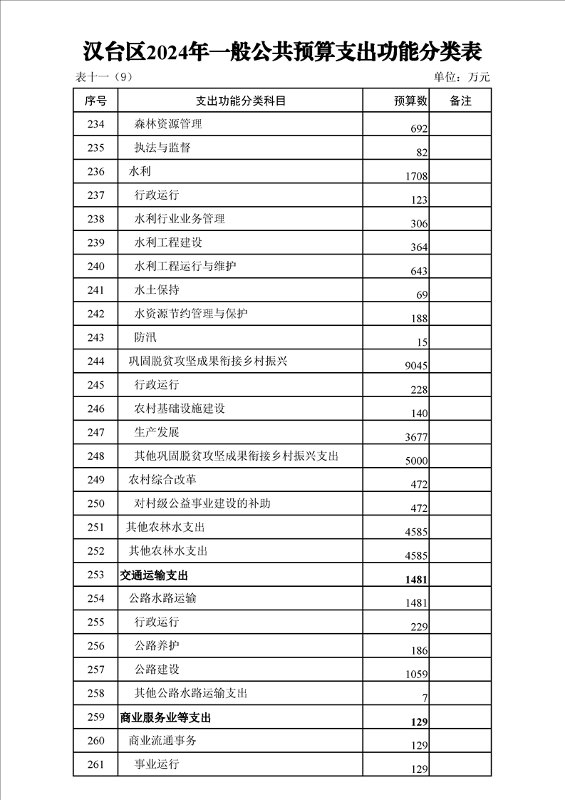 漢中市漢臺區2023年財政預算執行情況和2024年財政預算(草案)