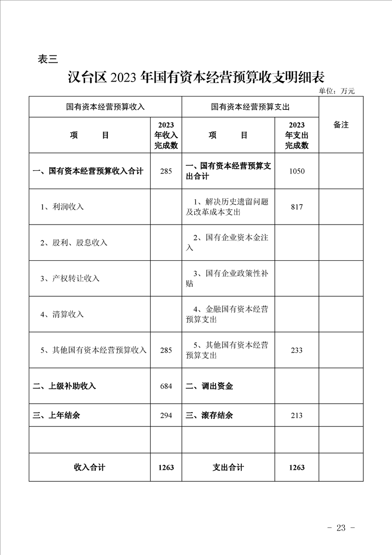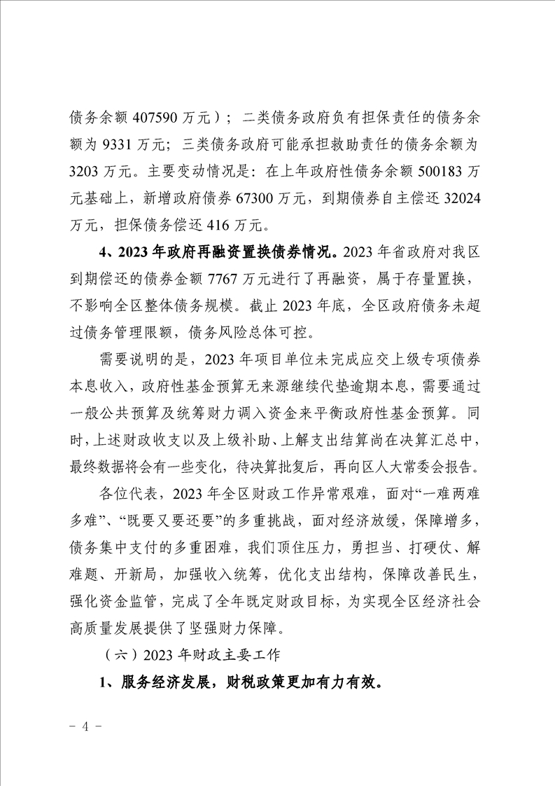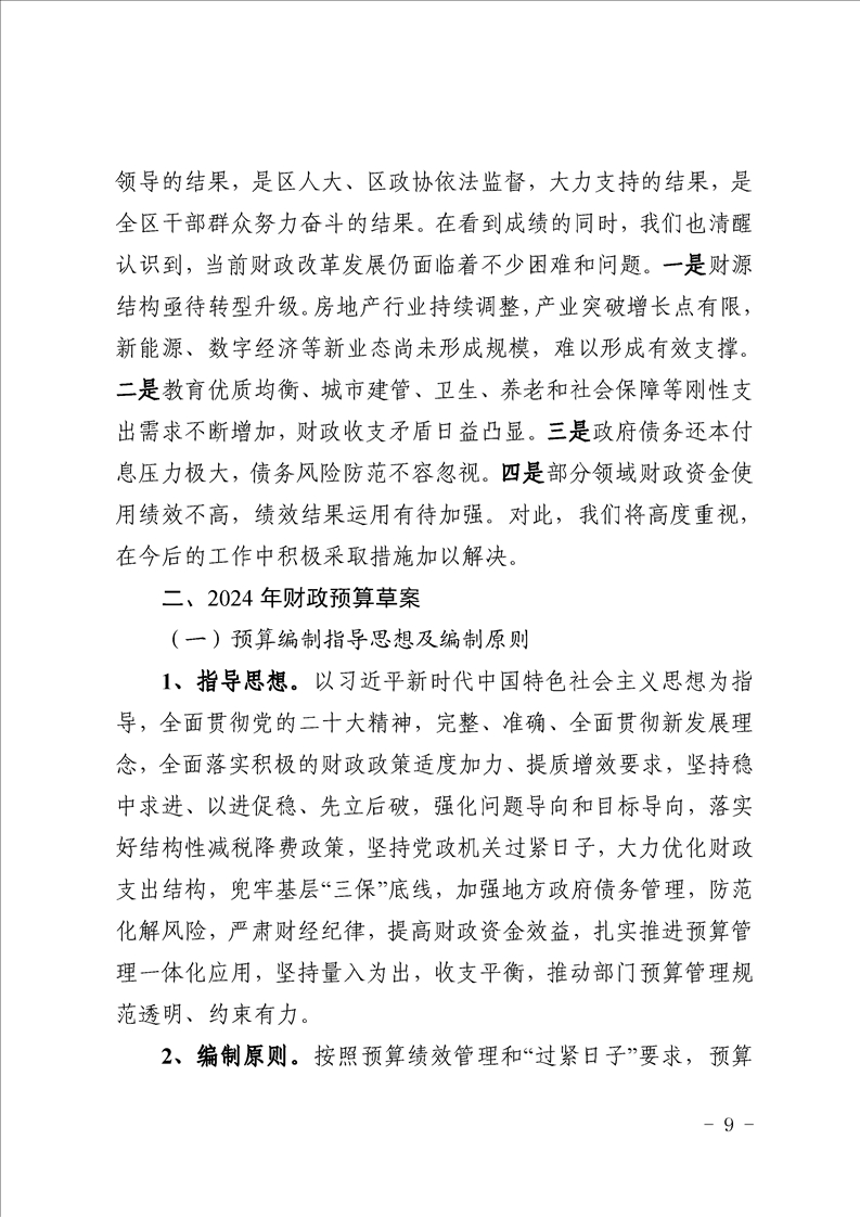 關于漢中市漢臺區2023年財政預算執行情況和2024年財政預算草案的報告