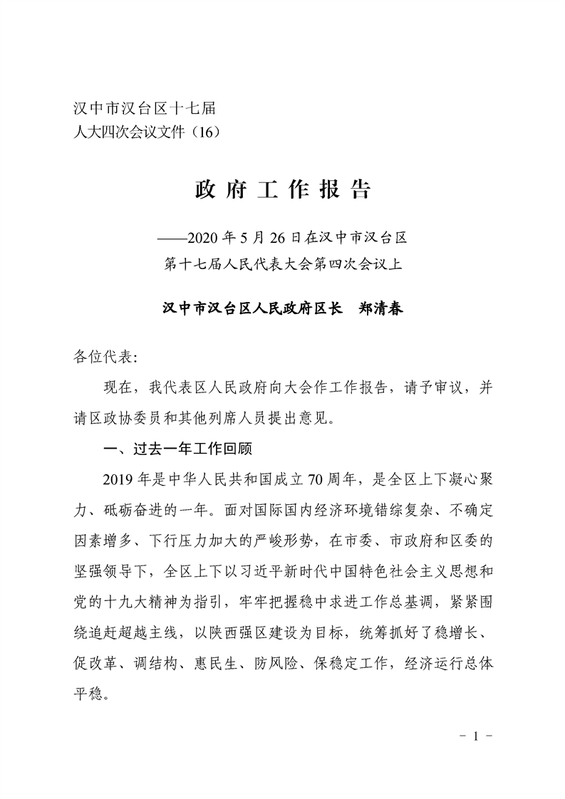 2020年漢臺(tái)區(qū)政府工作報(bào)告