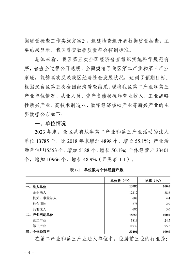 漢中市漢臺(tái)區(qū)第五次全國(guó)經(jīng)濟(jì)普查公報(bào)(第一號(hào))——單位基本情況及部分新興產(chǎn)業(yè)發(fā)展情況