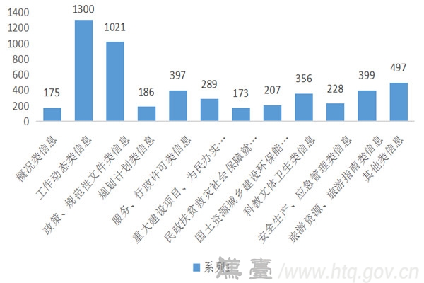 通過政府網站、電子顯示屏主動公開的政府信息中,概況類信息175條,占3.31%;工作動態類信息1300,占24.58%;政策、規范性文件類信息1021條,占19.31%;規劃計劃類信息186條,占3.52%;服務、行政許可類信息397條,占7.51%;重大建設項目、為民辦實事類信息289條,占5.47%;民政扶貧救災社會保障就業類信息173條,占3.27%;國土資源城鄉建設環保能源類信息207條,占3.91%;科教文體衛生類信息356條,占6.73%;安全生產、應急管理類信息228條,占5.44%;旅游資源、旅游指南類信息399,占7.55%。其它類信息497條,占9.39%。信息 公開內容概述如下: