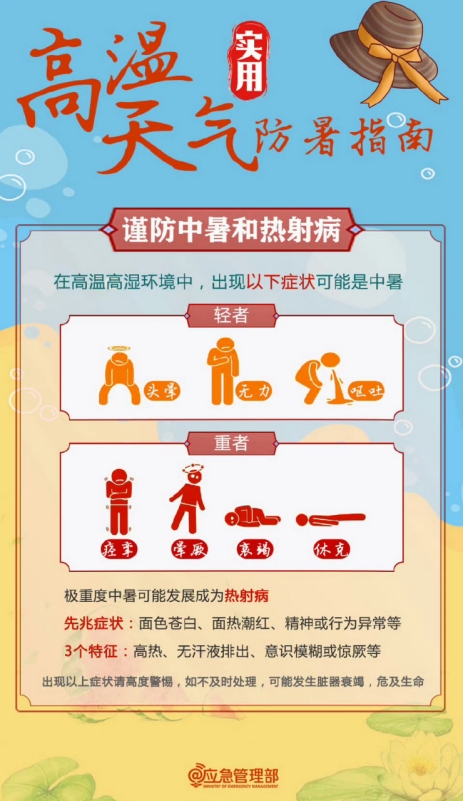 高溫天氣下中暑、熱射病等高溫相關疾病的發生率顯著上升,快收好這份高溫天氣防暑指南: