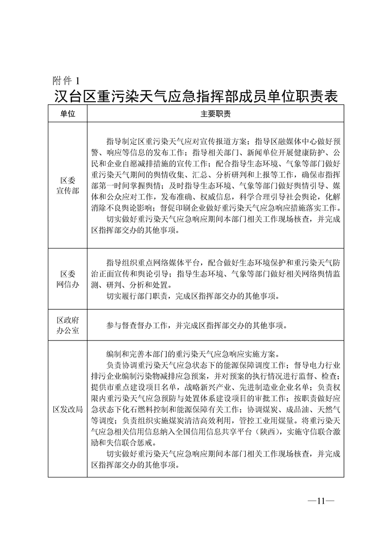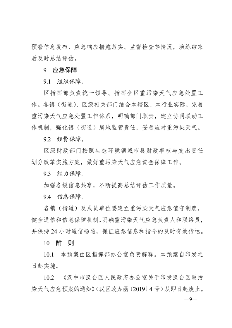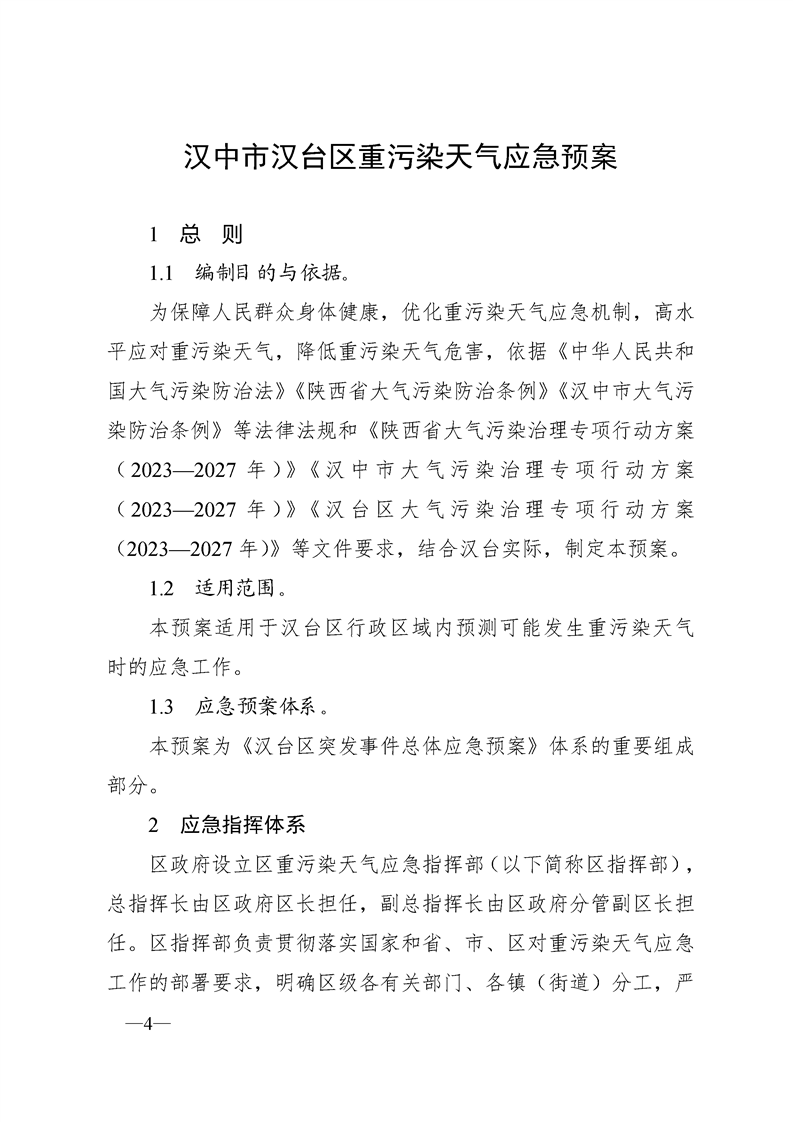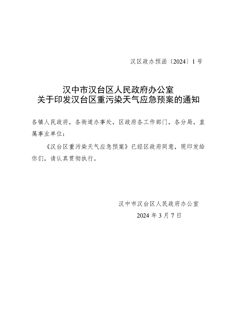 漢中市漢臺區人民政府辦公室關于印發漢臺區重污染天氣應急預案的通知
