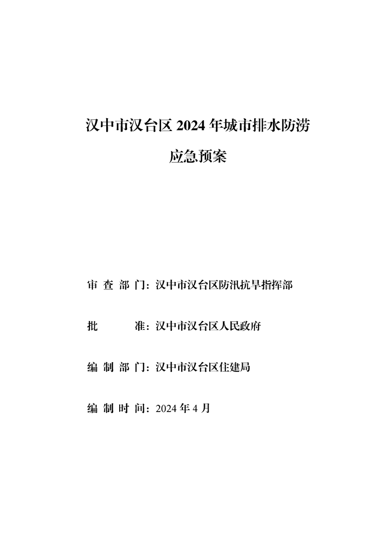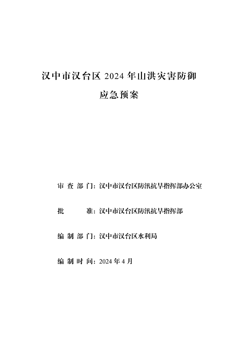 漢中市漢臺區防汛抗旱指揮部關于印發《漢中市漢臺區2024年山洪災害防御應急預案》《漢中市漢臺區2024年城市排水防澇應急預案》的通知