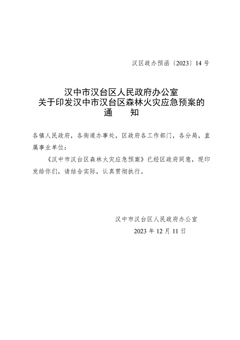 漢中市漢臺區(qū)人民政府辦公室關(guān)于印發(fā)漢中市漢臺區(qū)森林火災(zāi)應(yīng)急預(yù)案的通知