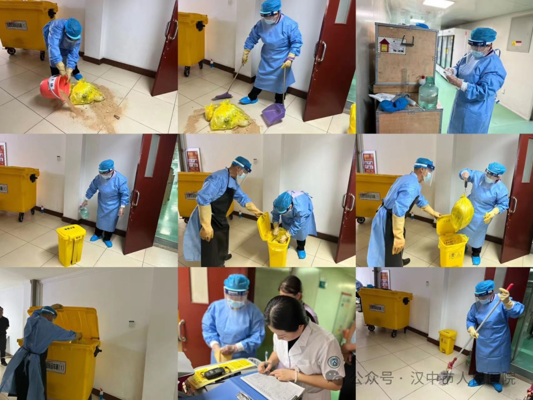 8月22日下午,先后在門急診樓七樓病理科模擬開展了工作人員取拿危化品過程中不慎將二甲苯遺灑在地面造成意外泄漏事件的應(yīng)急處置演練,在二樓檢驗(yàn)科模擬開展了收集醫(yī)廢過程中包裝袋破損造成醫(yī)廢遺灑泄漏的應(yīng)急處置演練。