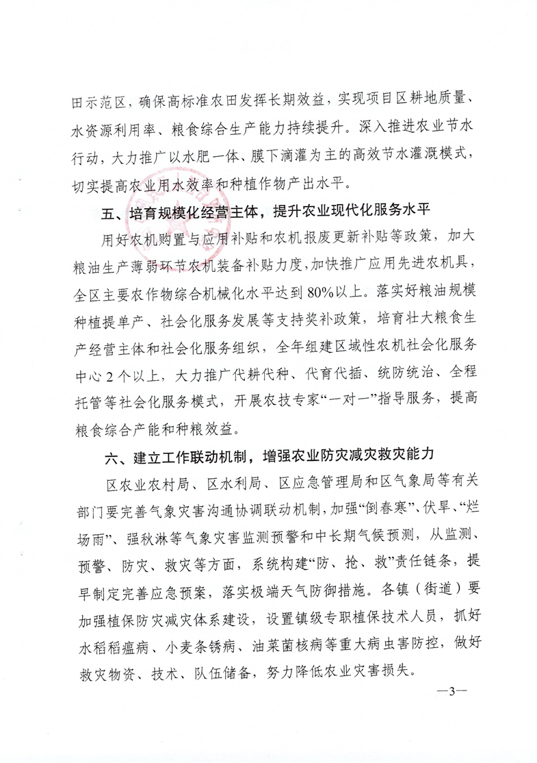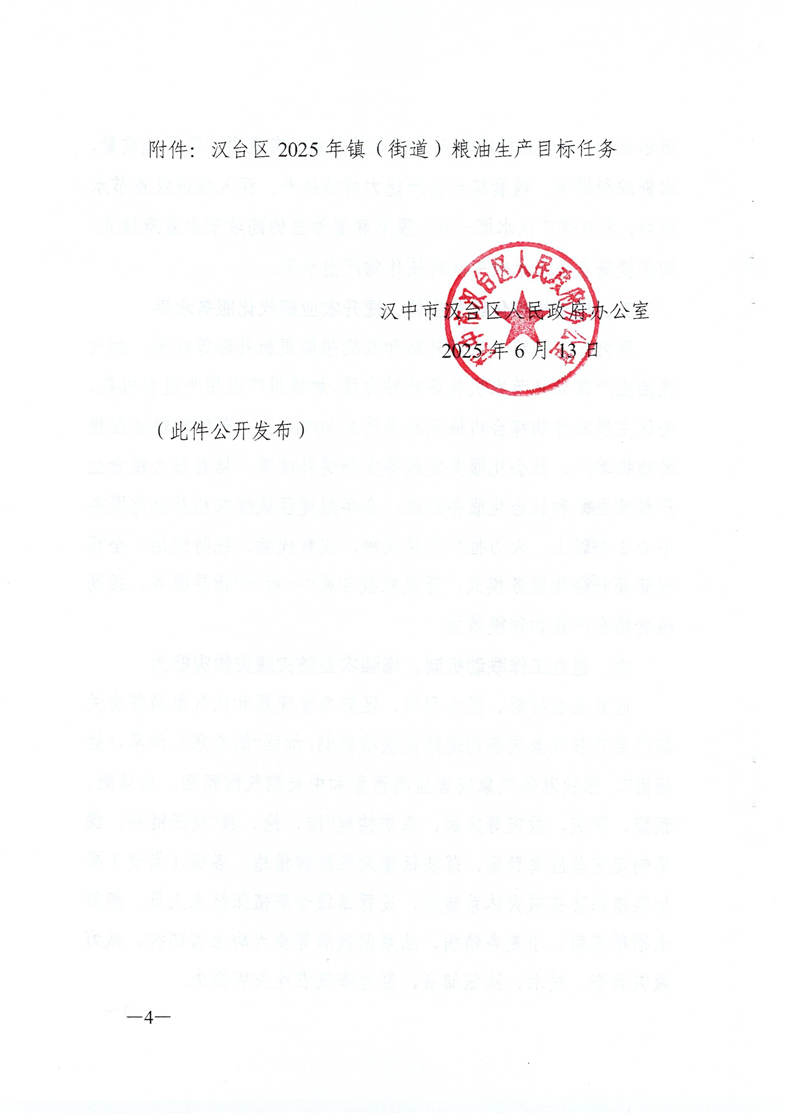 漢中市漢臺區人民政府辦公室關于切實做好2025年糧油生產工作的通知