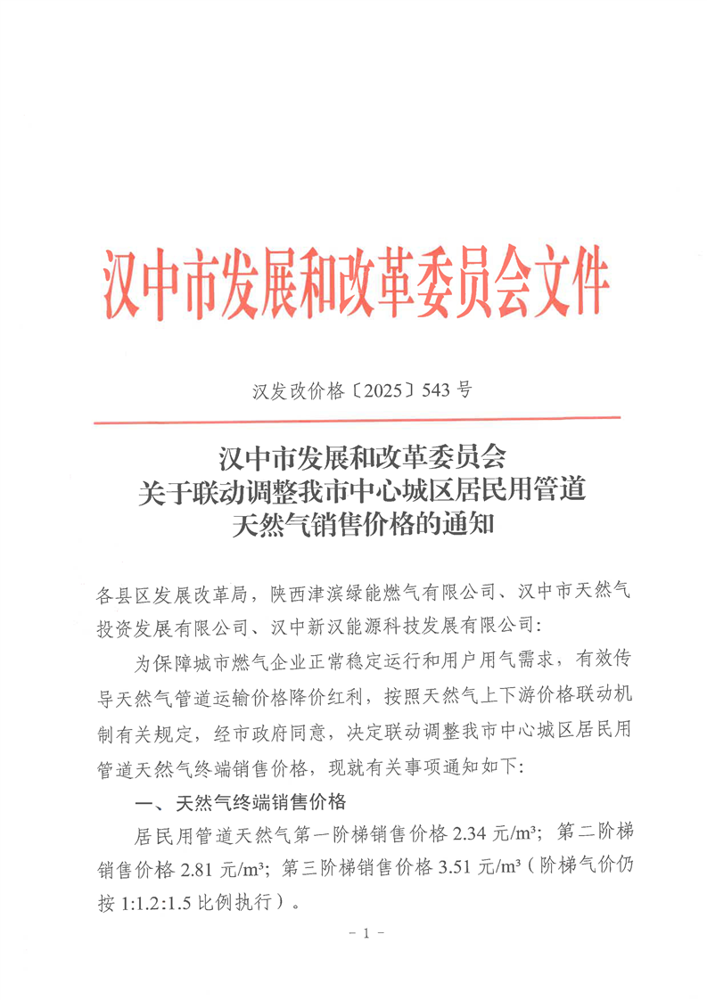 關(guān)于聯(lián)動(dòng)調(diào)整我市中心城區(qū)居民用天然氣銷售價(jià)格的通知