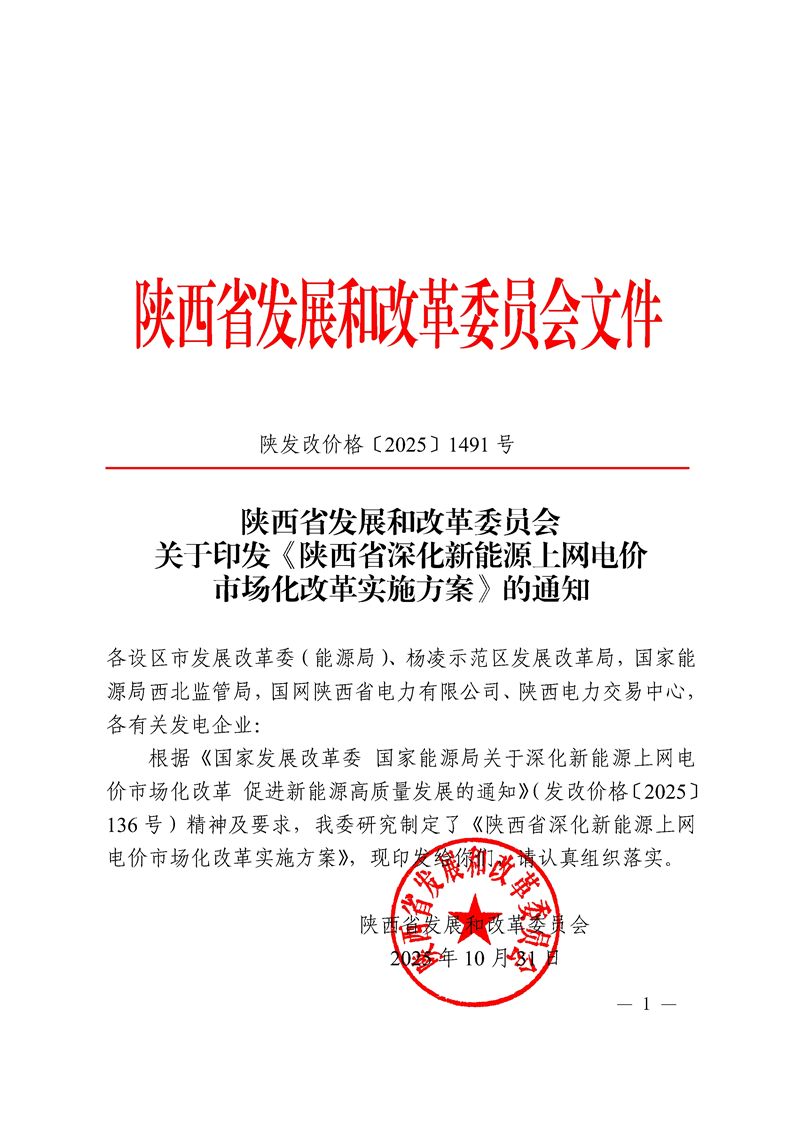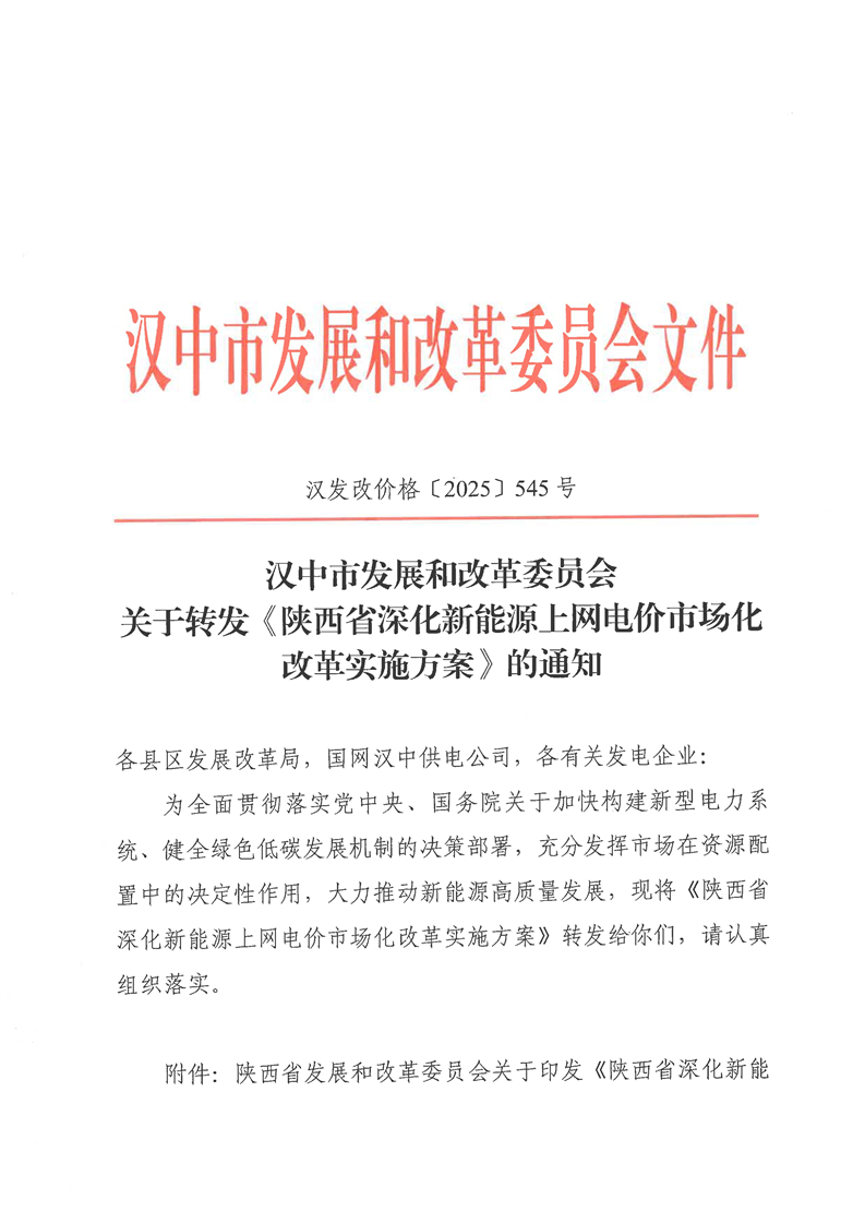 關于轉發《陜西省深化新能源上網電價市場化改革實施方案》的通知