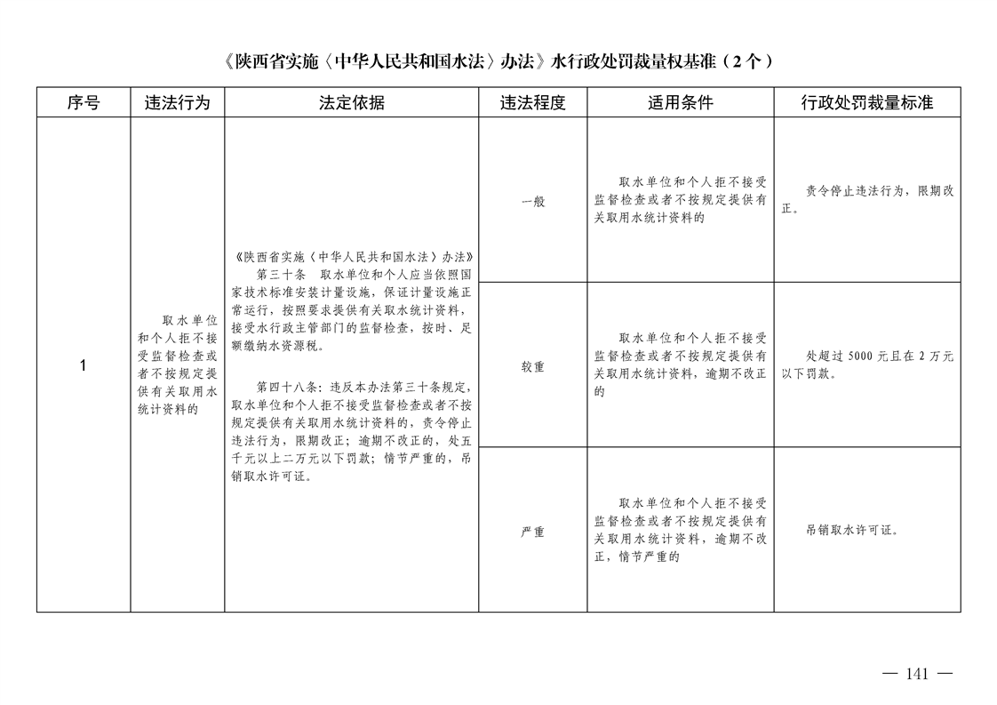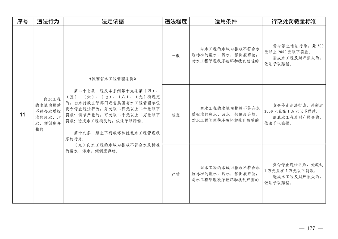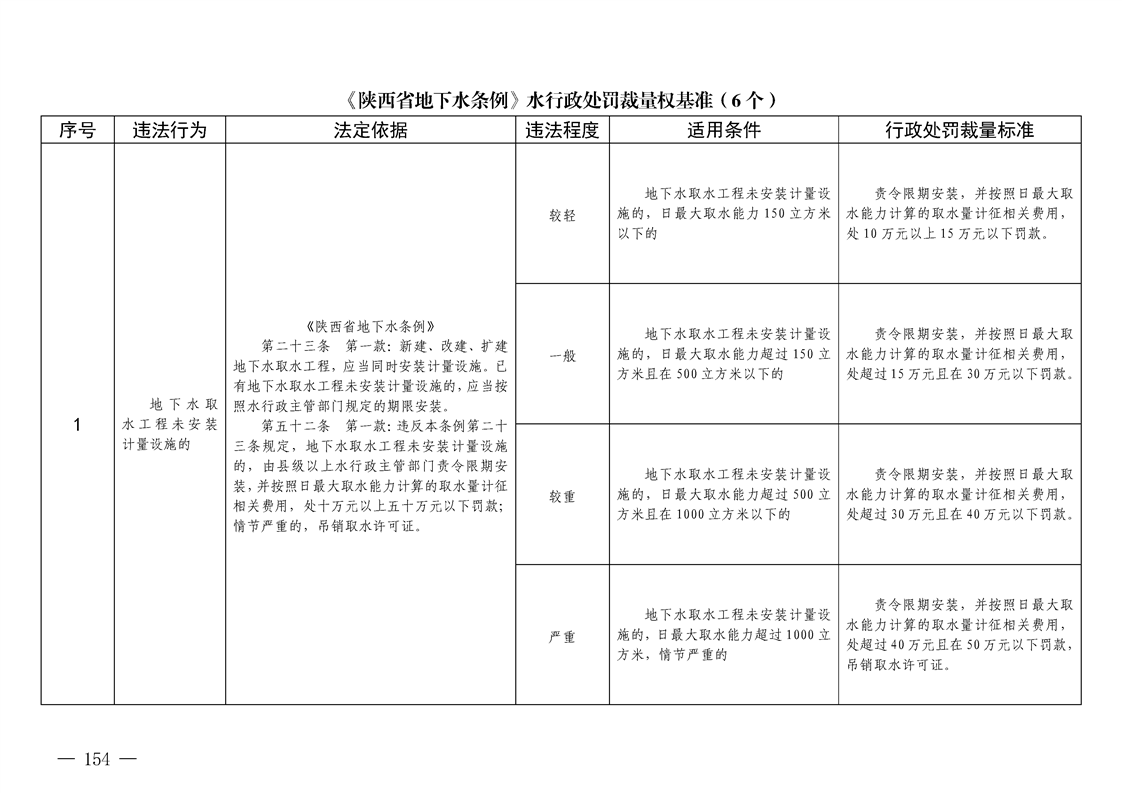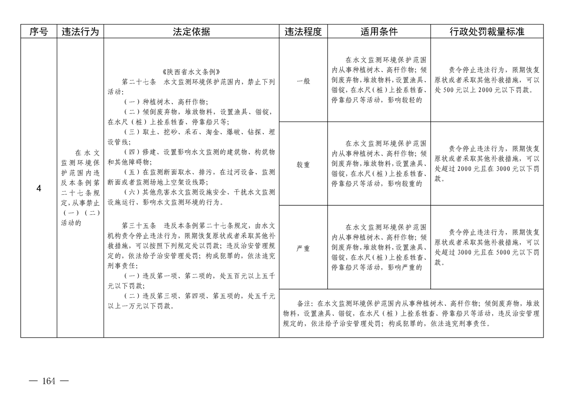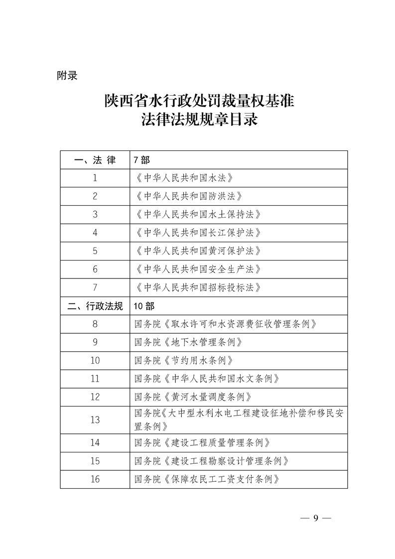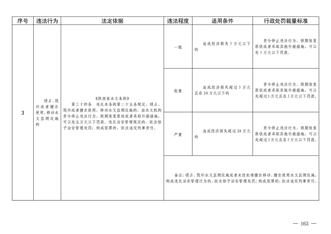 《陜西省水行政處罰裁量權(quán)基準(zhǔn)(試行)》
