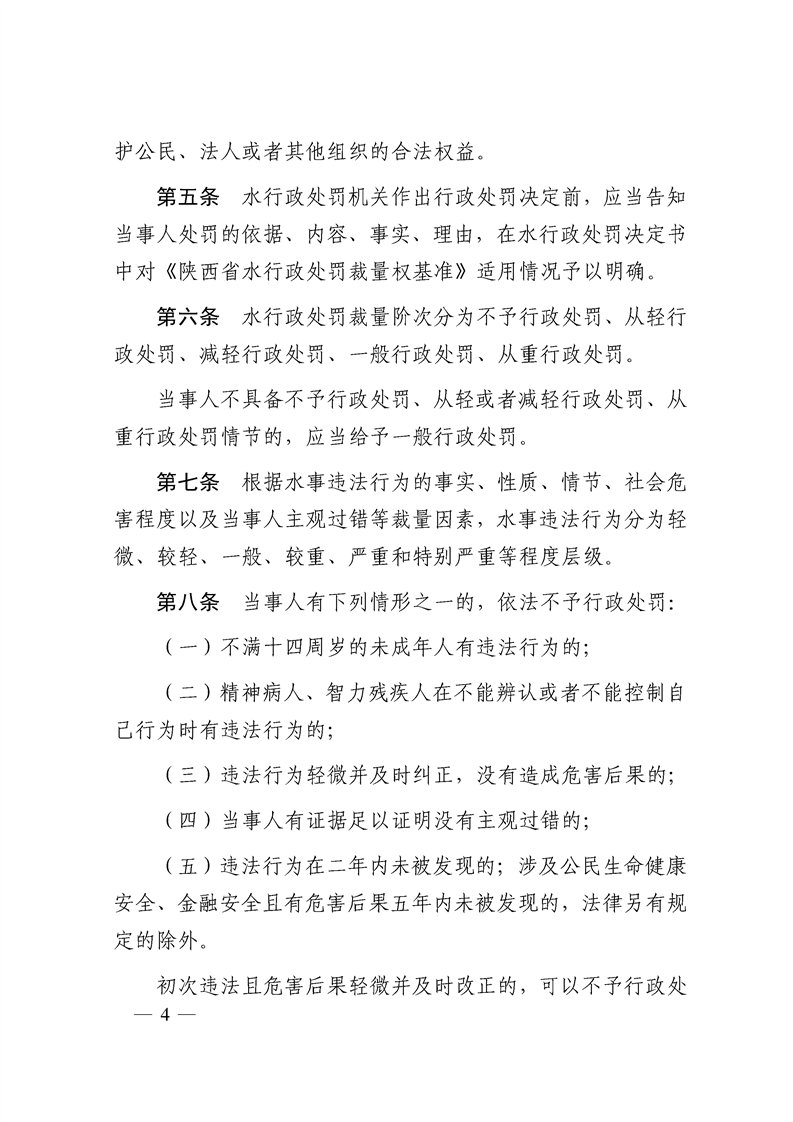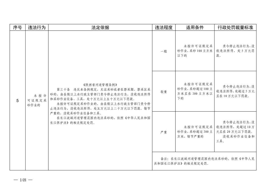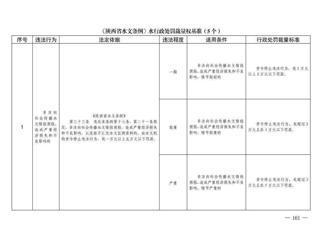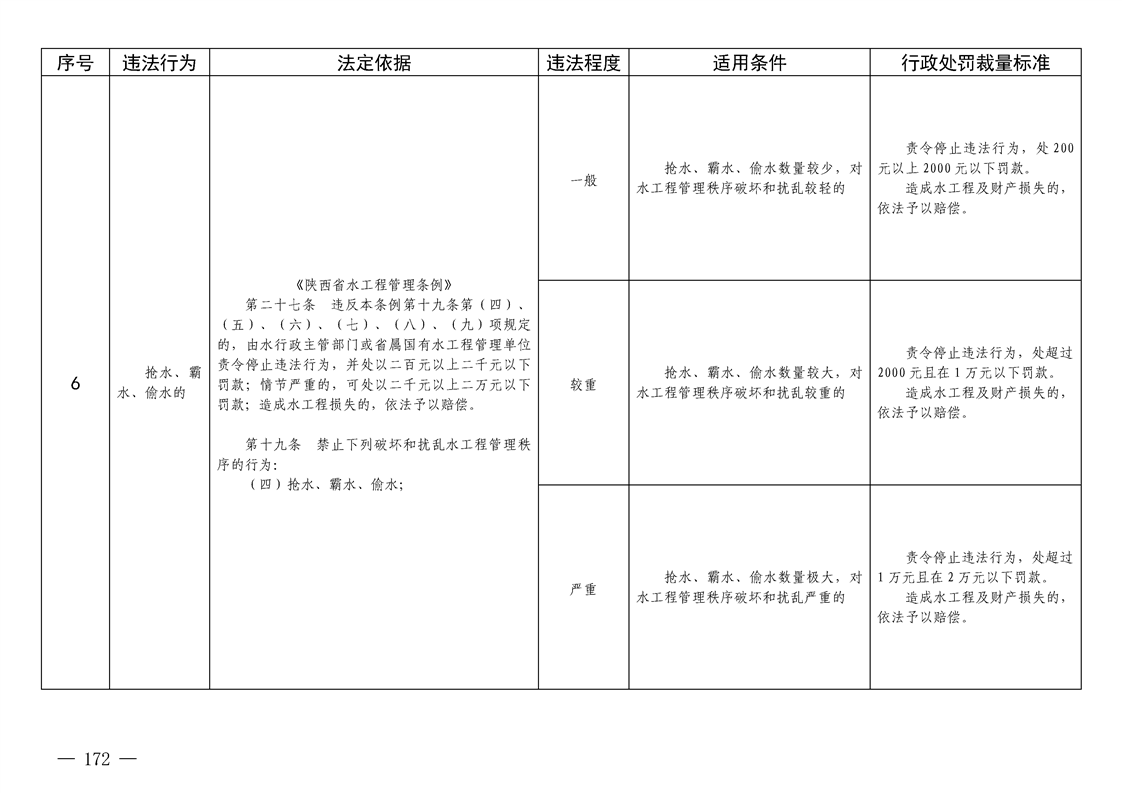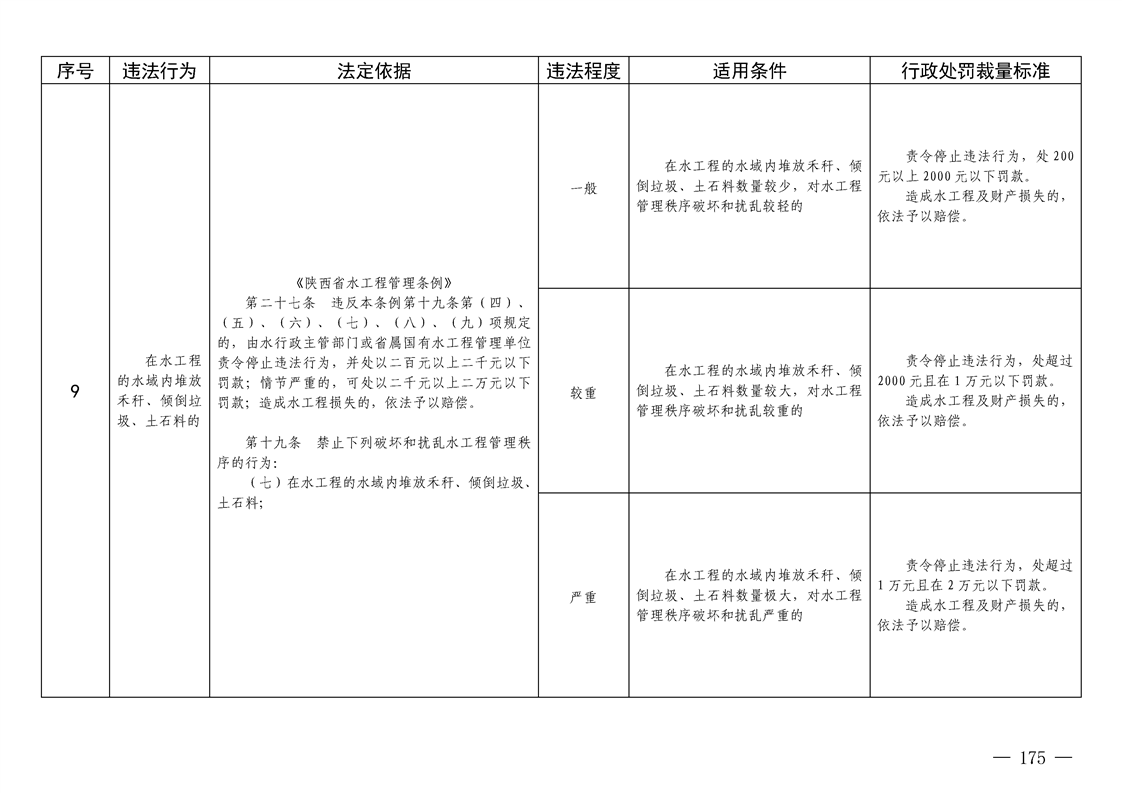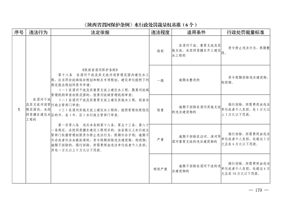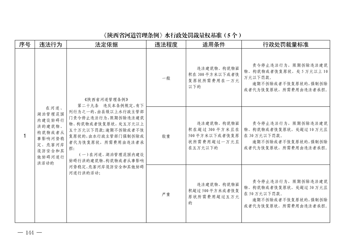 《陜西省水行政處罰裁量權(quán)基準(zhǔn)(試行)》
