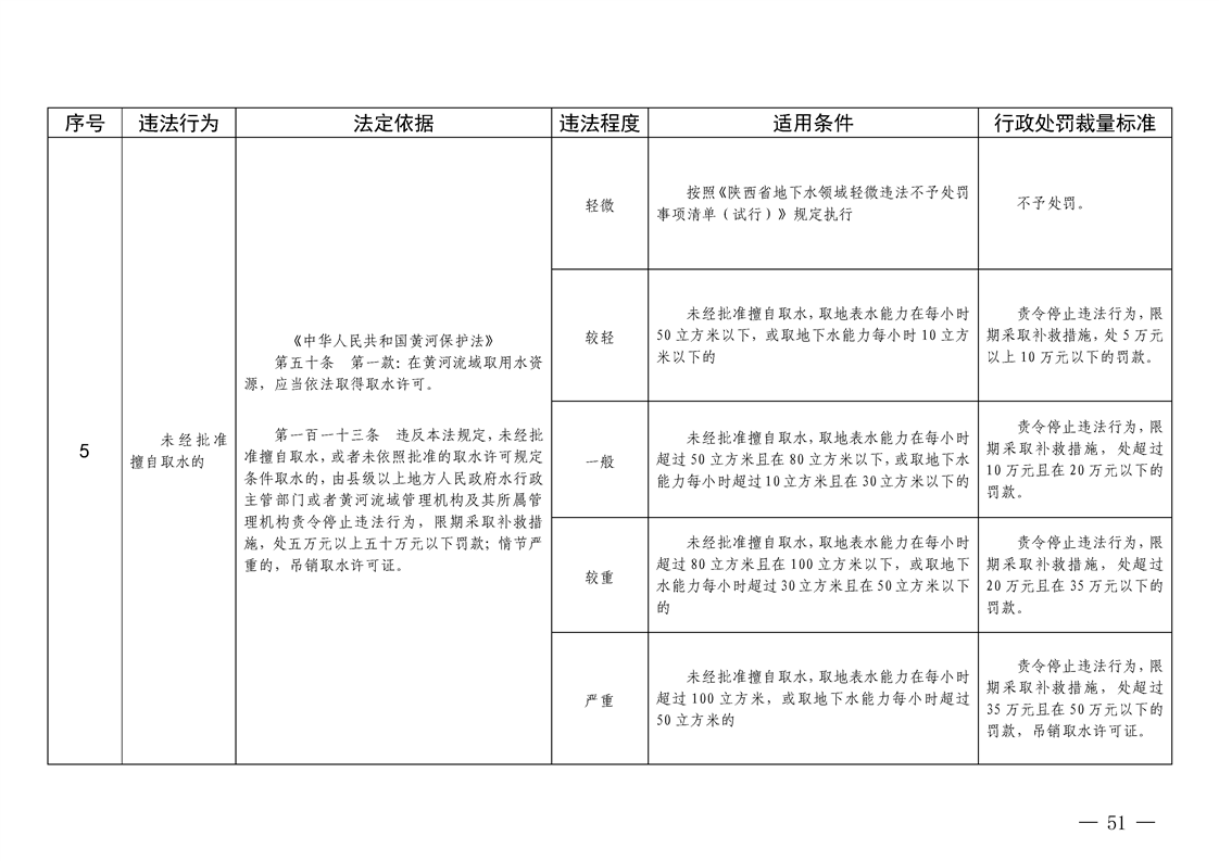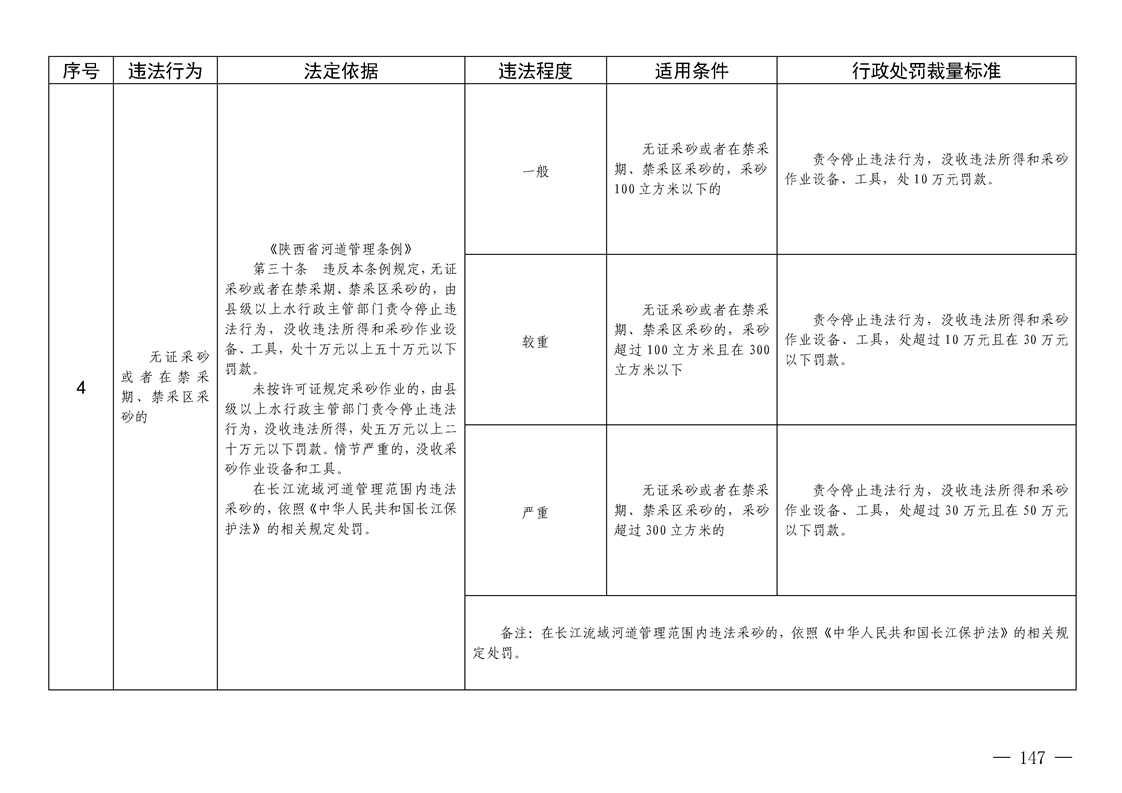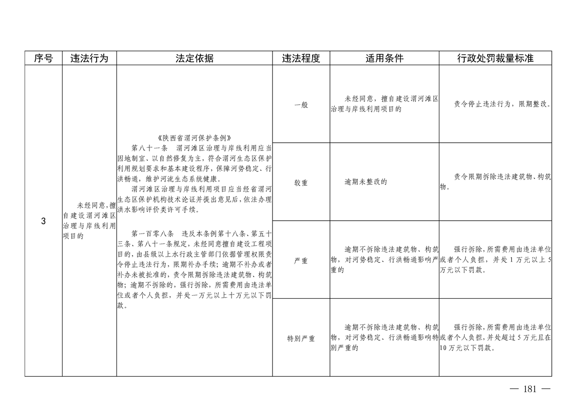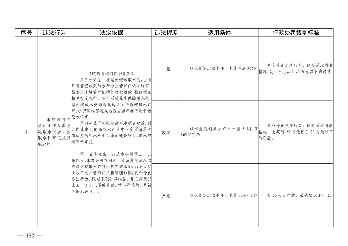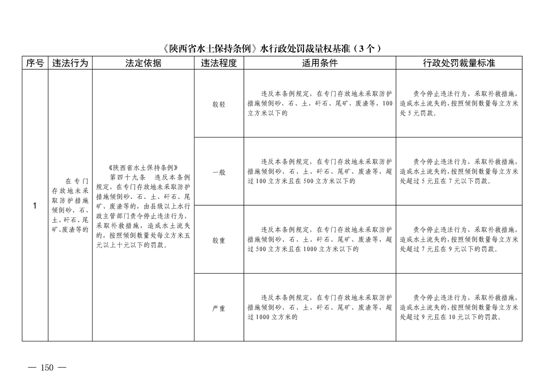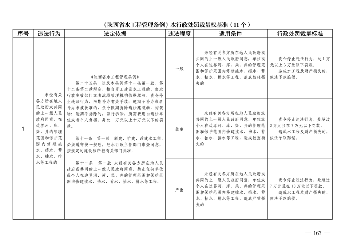 《陜西省水行政處罰裁量權(quán)基準(zhǔn)(試行)》