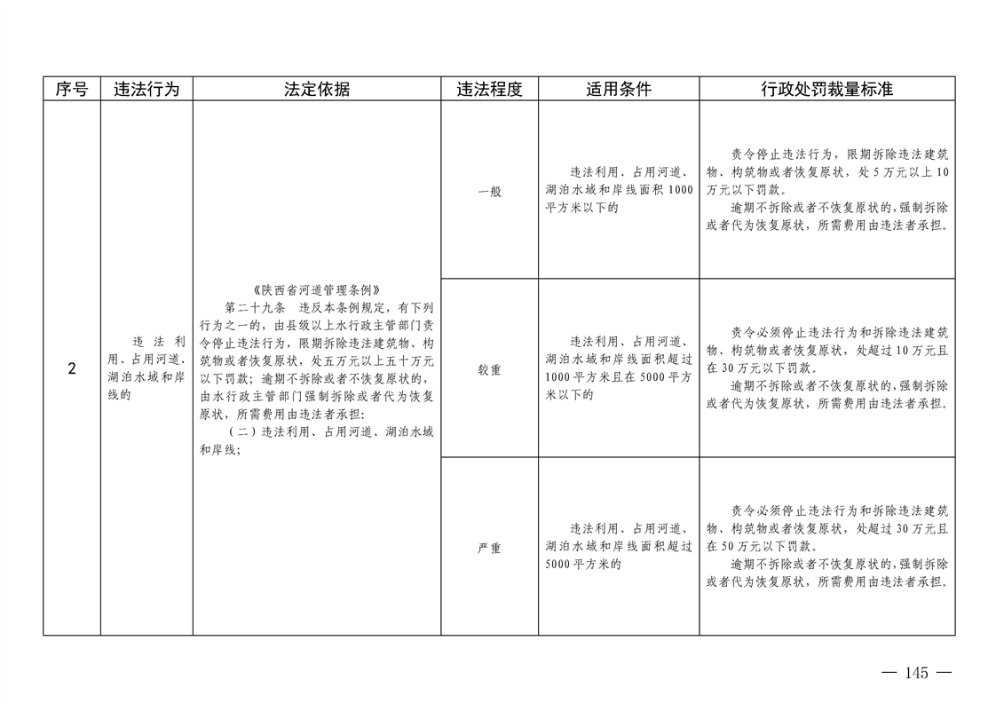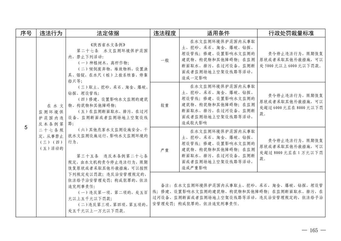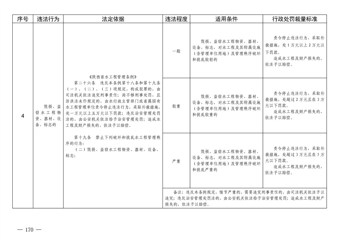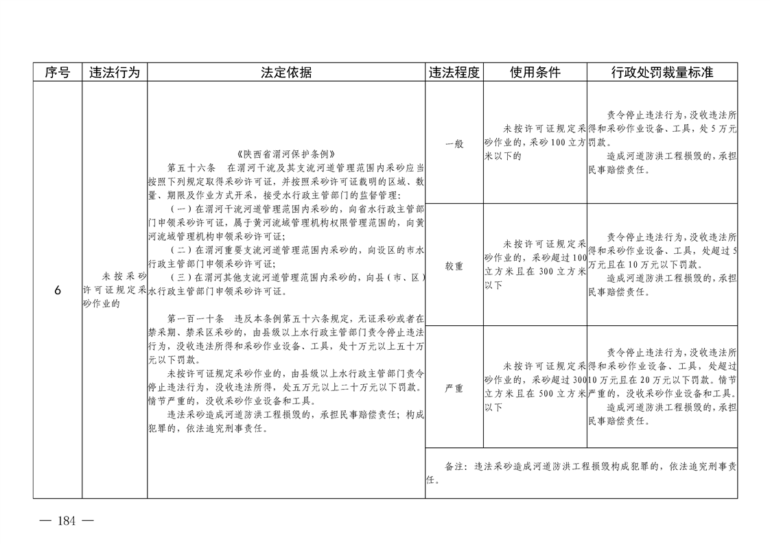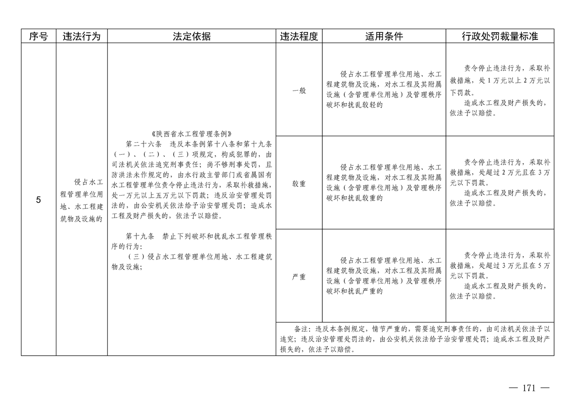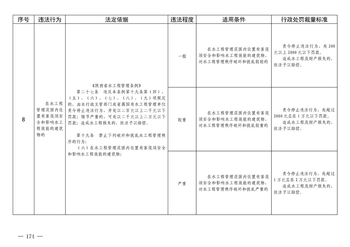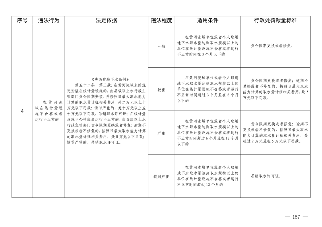 《陜西省水行政處罰裁量權(quán)基準(zhǔn)(試行)》