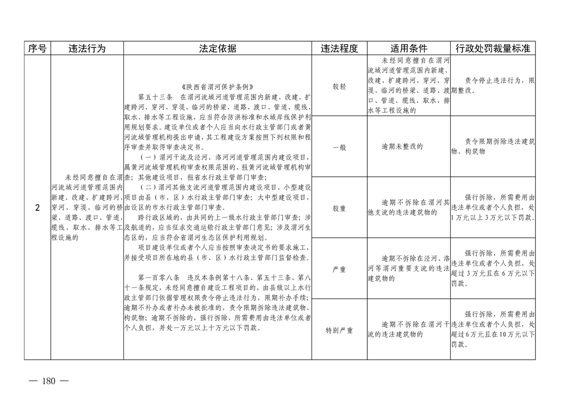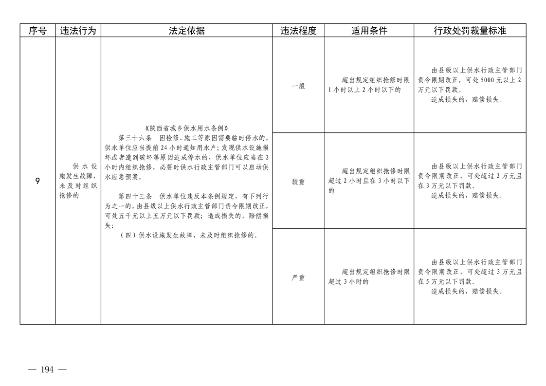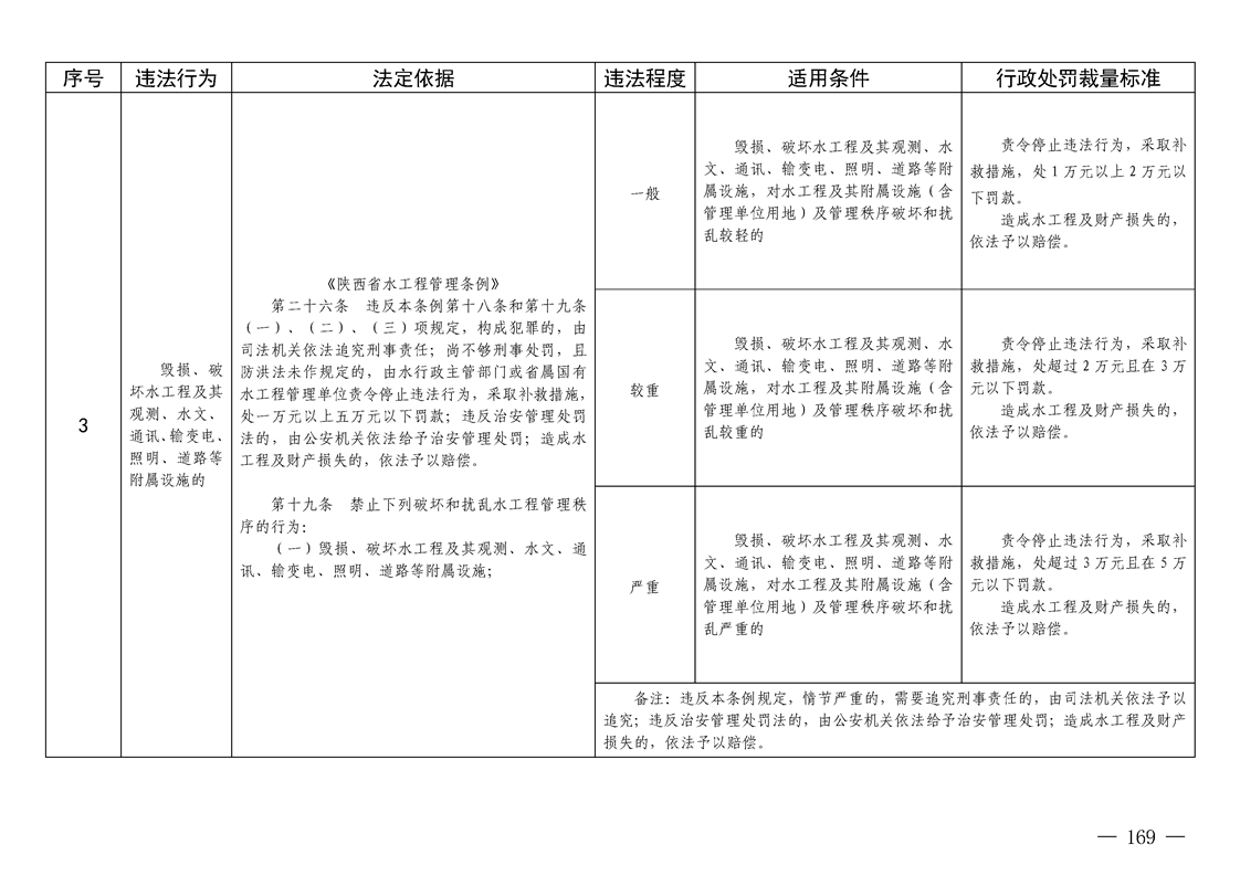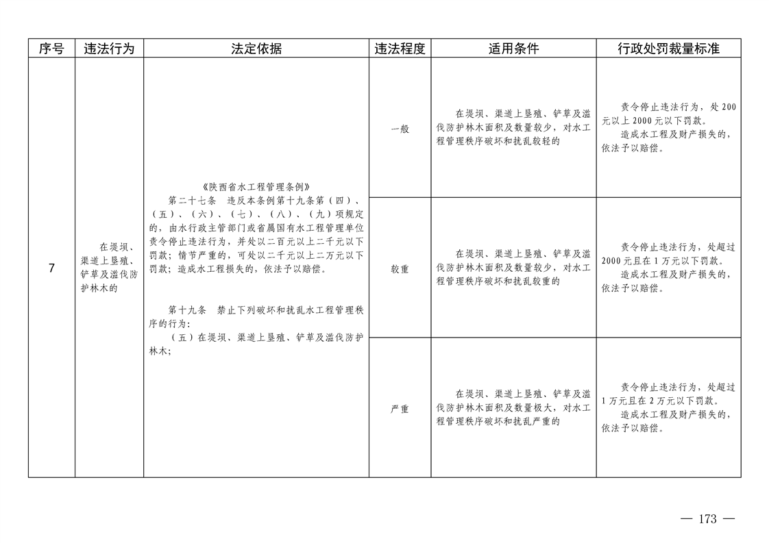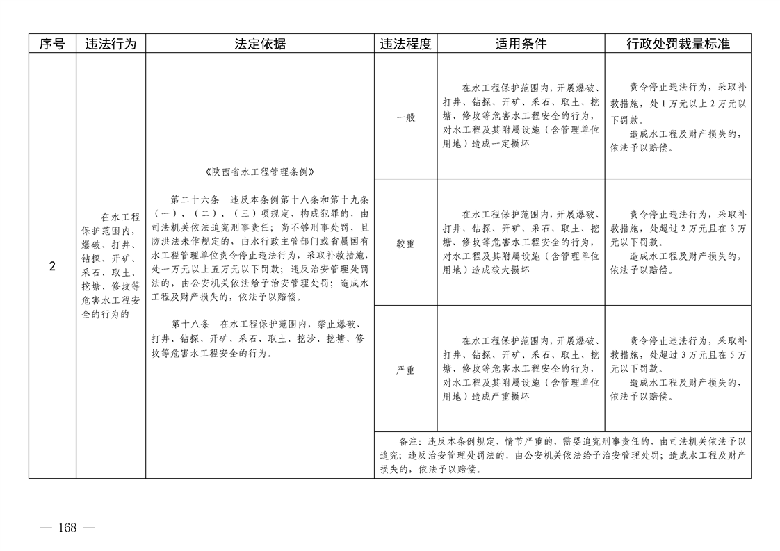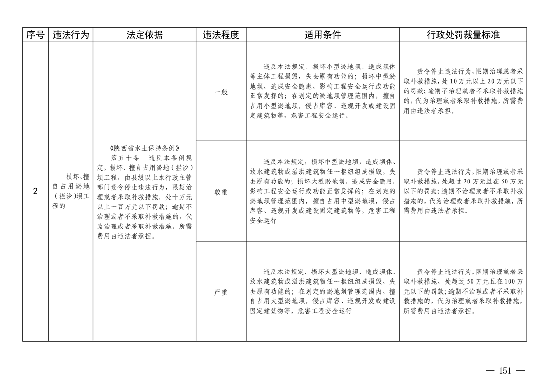 《陜西省水行政處罰裁量權(quán)基準(zhǔn)(試行)》