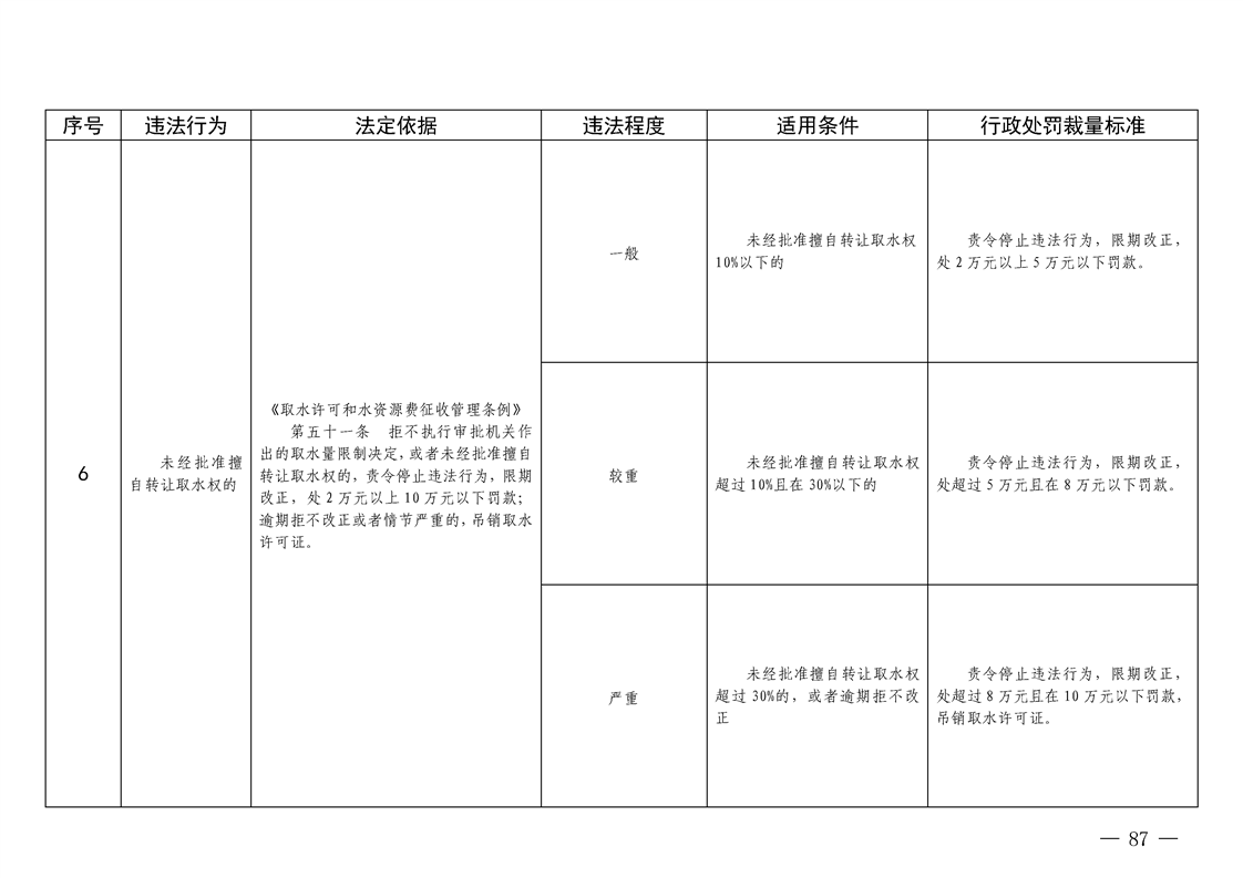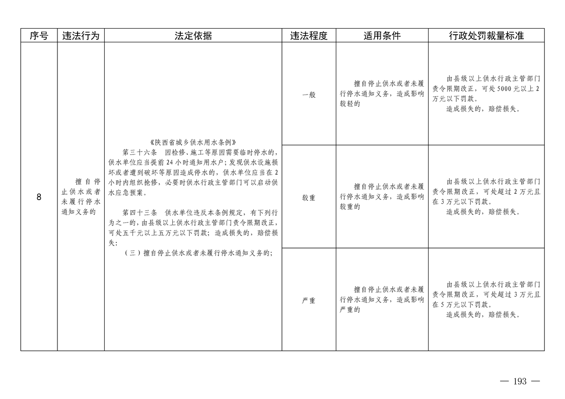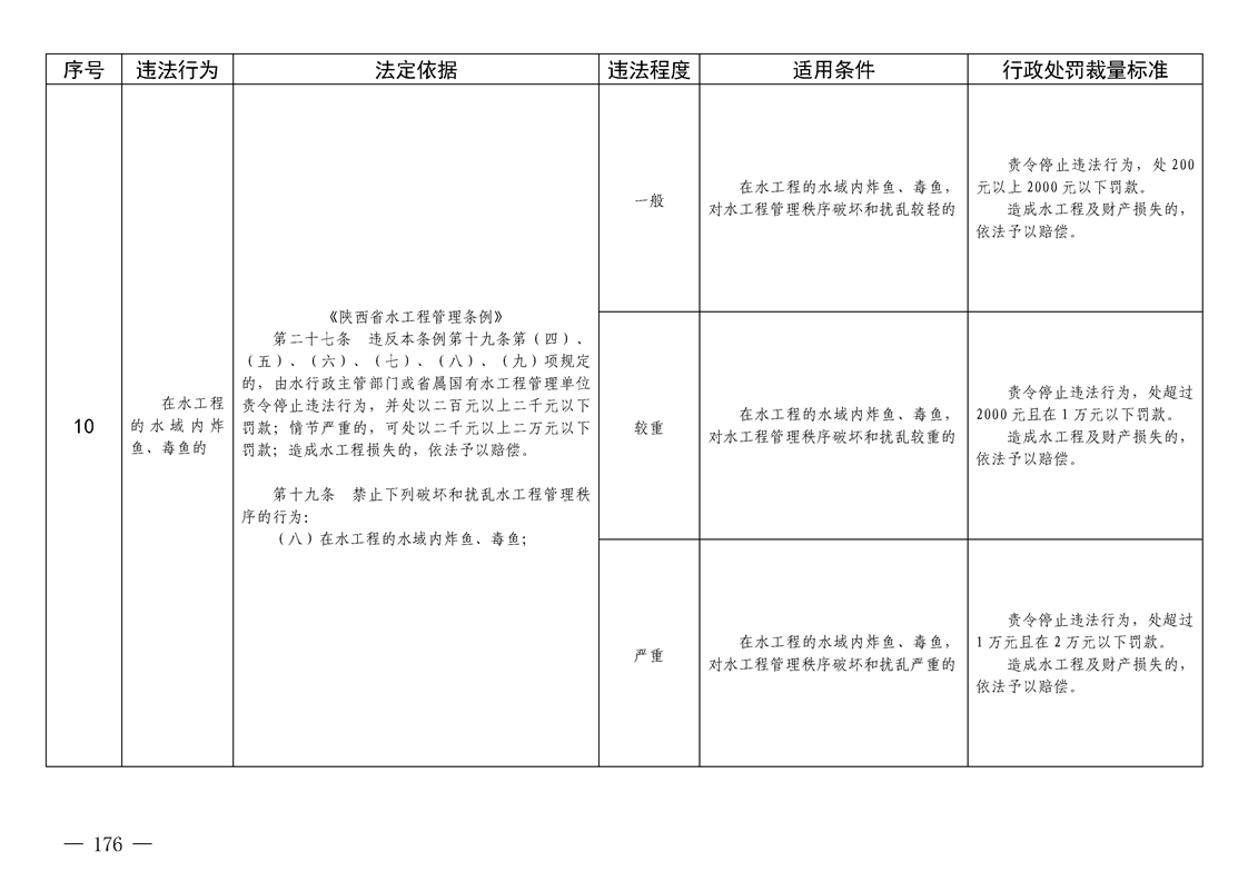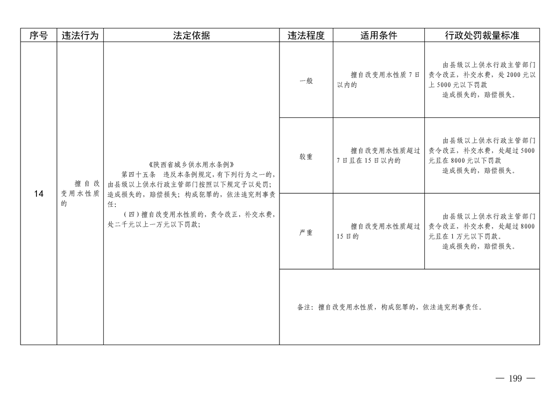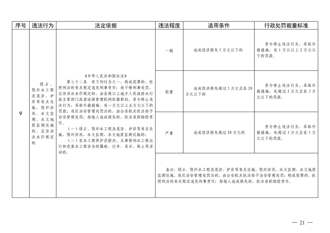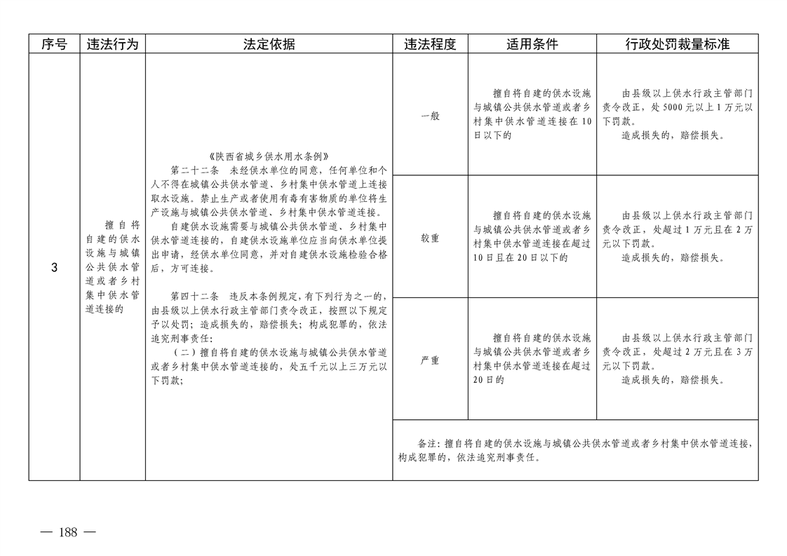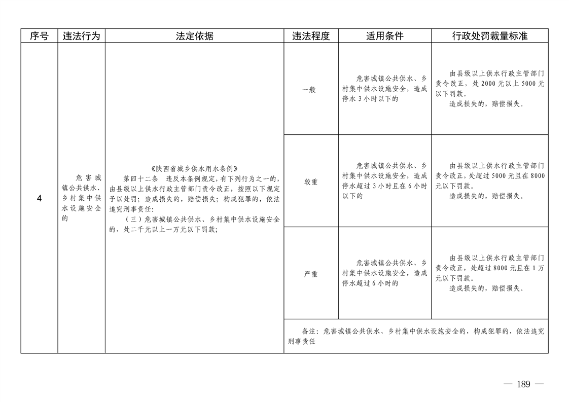 《陜西省水行政處罰裁量權(quán)基準(zhǔn)(試行)》