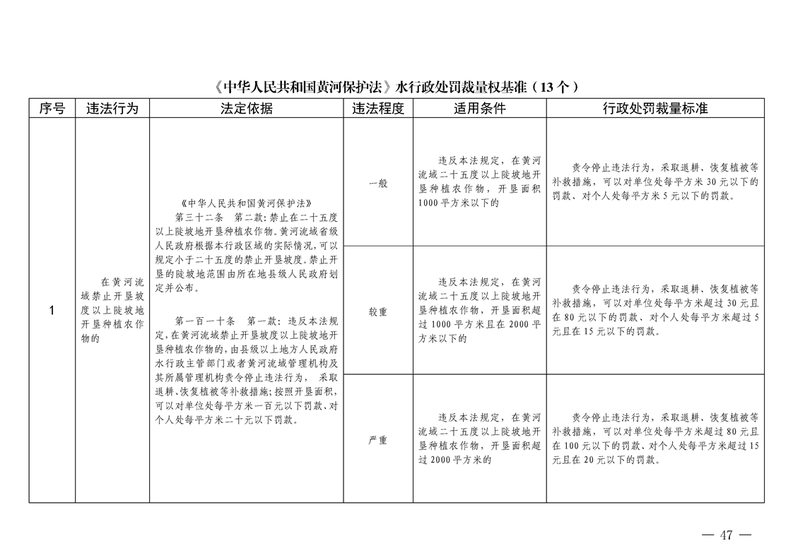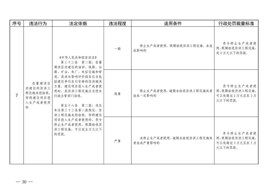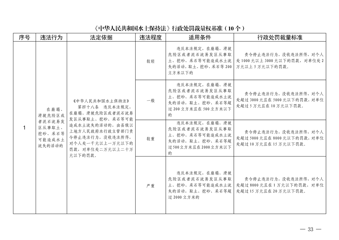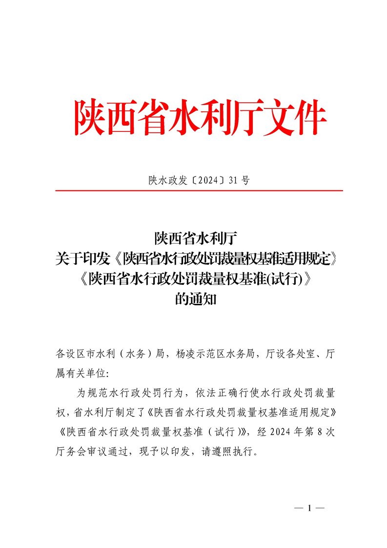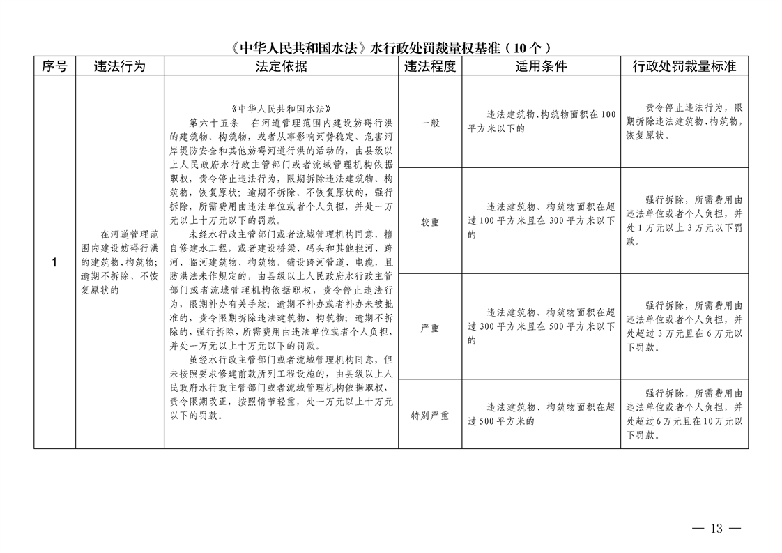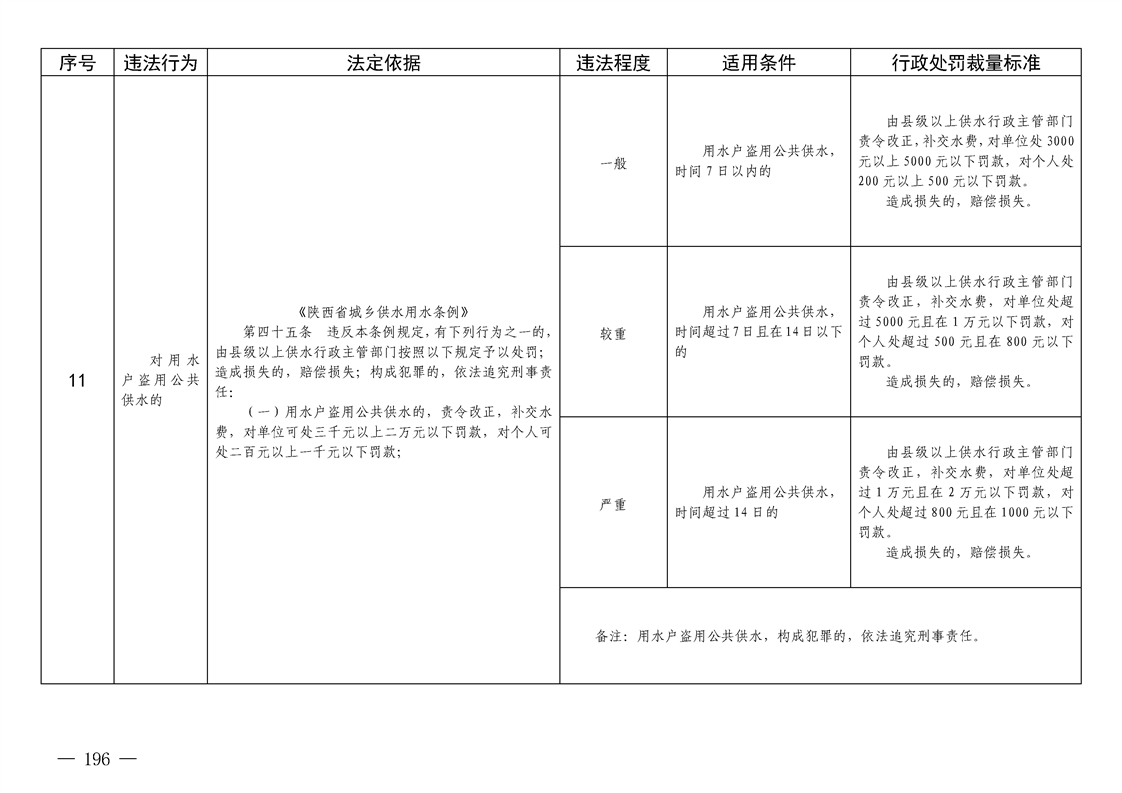 《陜西省水行政處罰裁量權(quán)基準(zhǔn)(試行)》