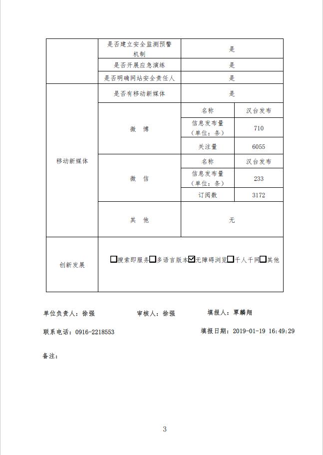 漢臺區政府網站工作2018年度報表