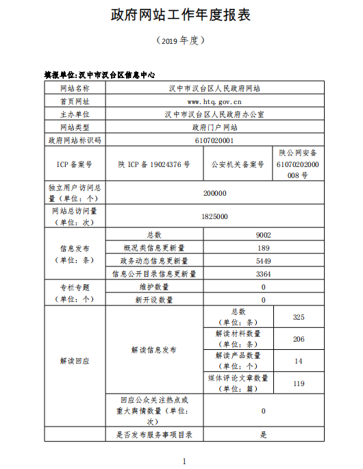 漢臺區(qū)政府網(wǎng)站工作2019年度報表